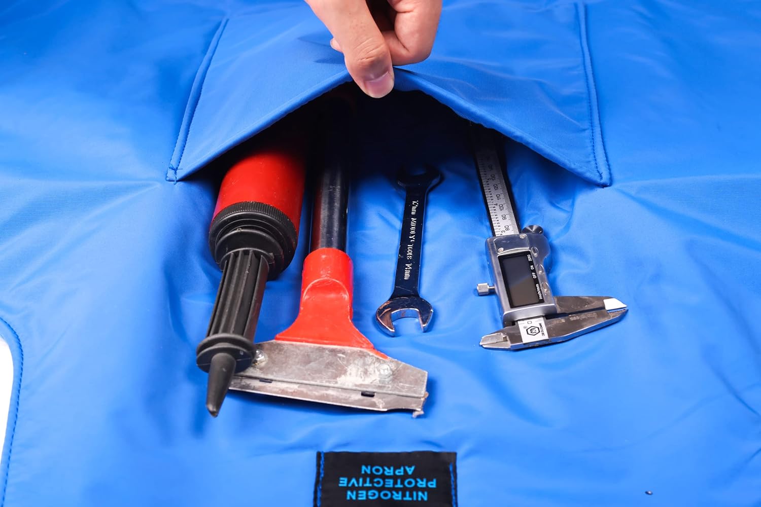- Material Composition: The Egowz Cryogenic Aprons are composed of 4 layers. The outer layer is Nylon Taslon with a waterproof coating. The inner lining is composed of two kinds of cotton, one is Thinsulate cotton and the other is low temperature cotton. The inner lining is made of comfortable and breathable fabric.