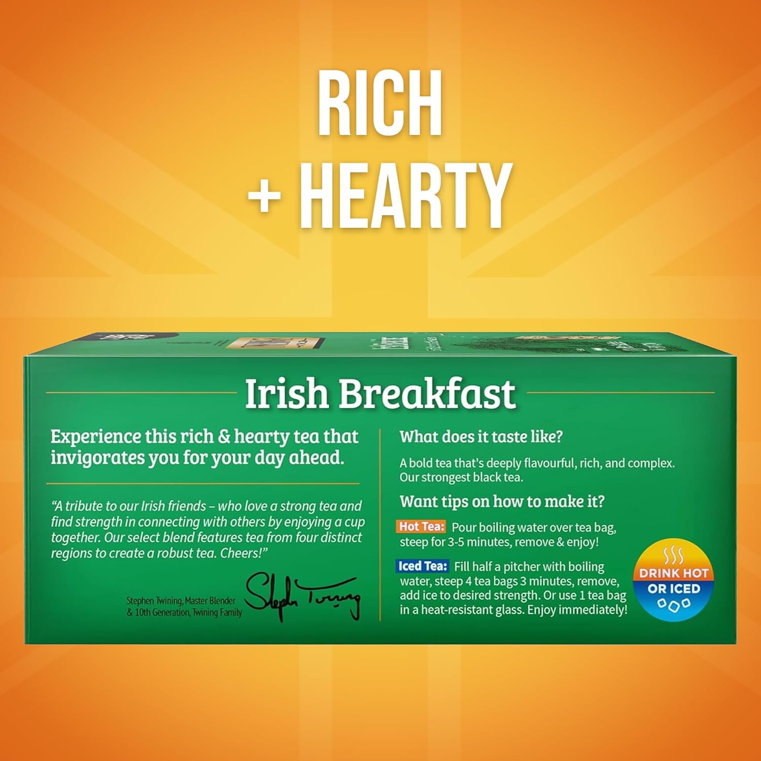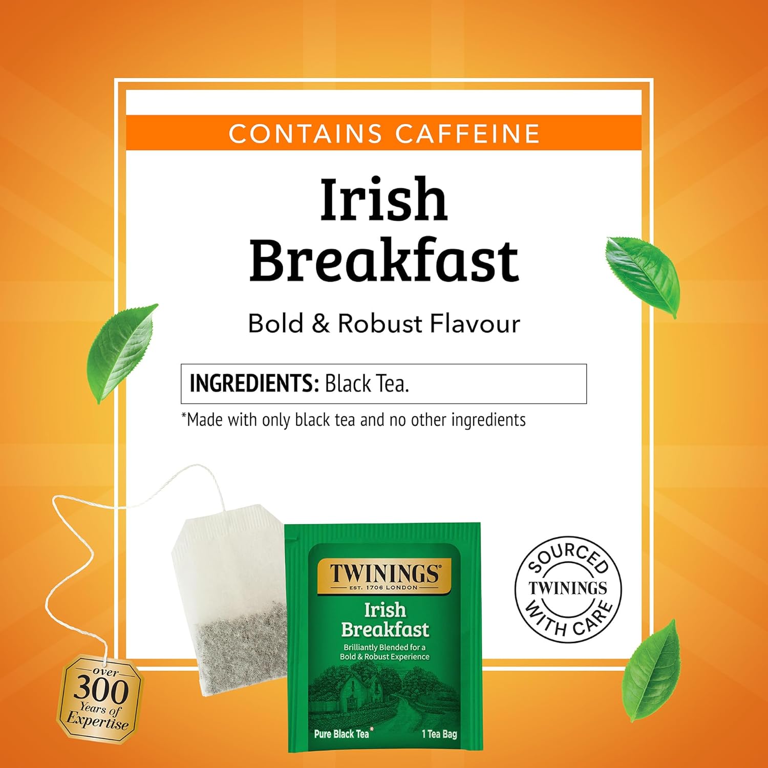 - TWININGS TRIBUTE TO THE IRISH: We've created a bold, rich tea blend that symbolized the Irish love of hearty black tea; Leaves from four regions for added body flavour and strength; Caffeinated, 100 Tea Bags