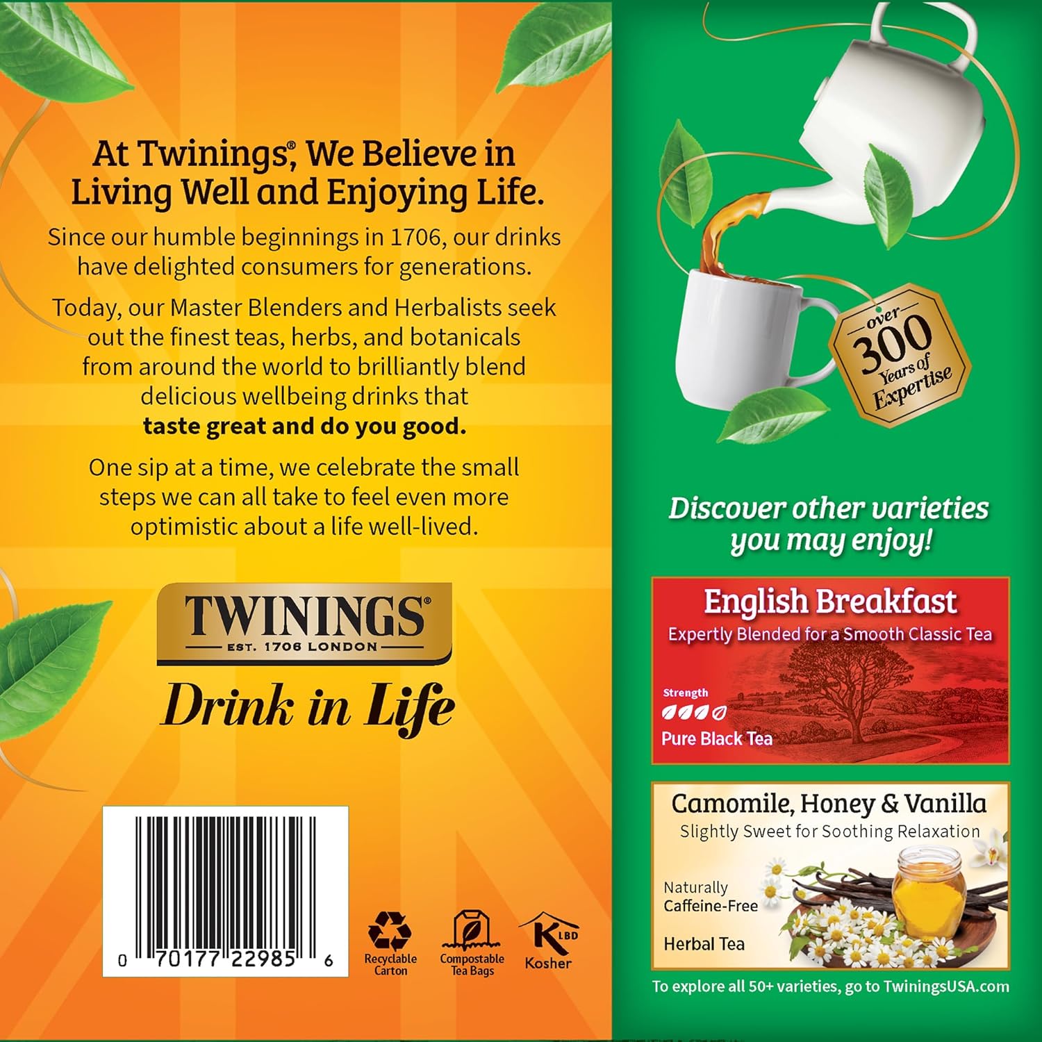 - DRINK IN LIFE: With a signature blend of tradition and innovation, Twinings encourages tea lovers to "Drink In Life" by taking small steps towards feeling good and living well, one sip at a time