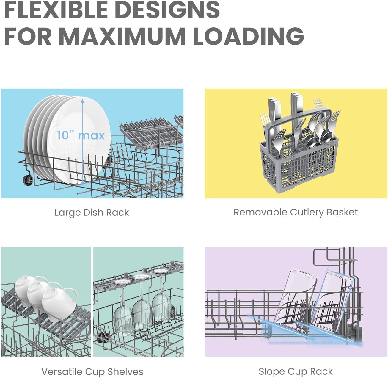 - Included Components : Dishwasher, User Manual, Power Cord, Inlet Hose, Drain Hose