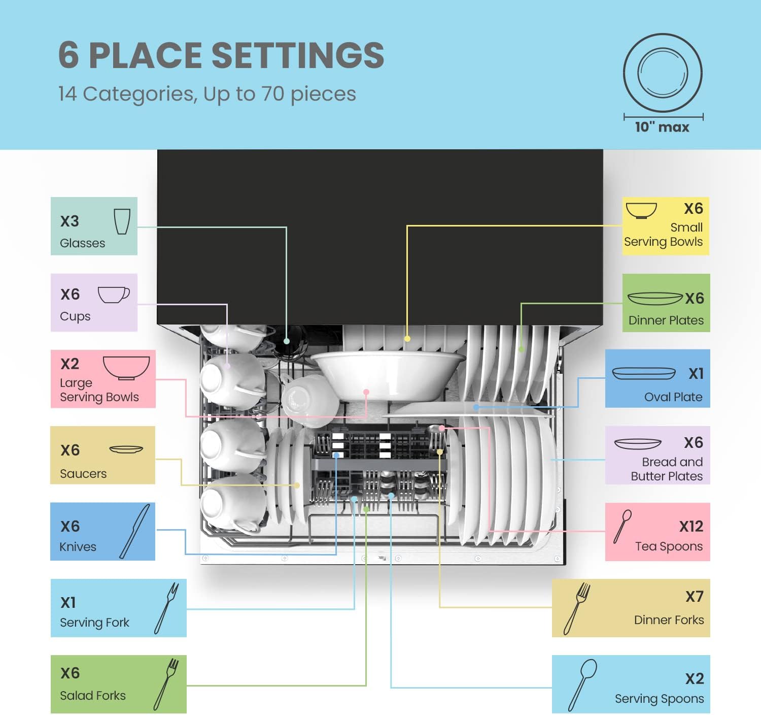 - Capacity : 6 Place Settings