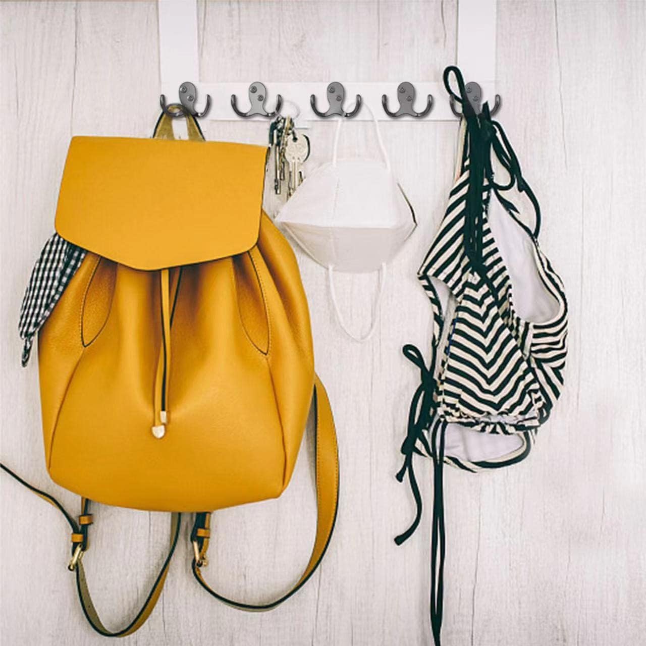 - Material:The Double Hooks not easy to break, anti-rust and anti-corrosion, The Coat hooks are made of zinc alloy and the screws are made of iron, which is hard and durable