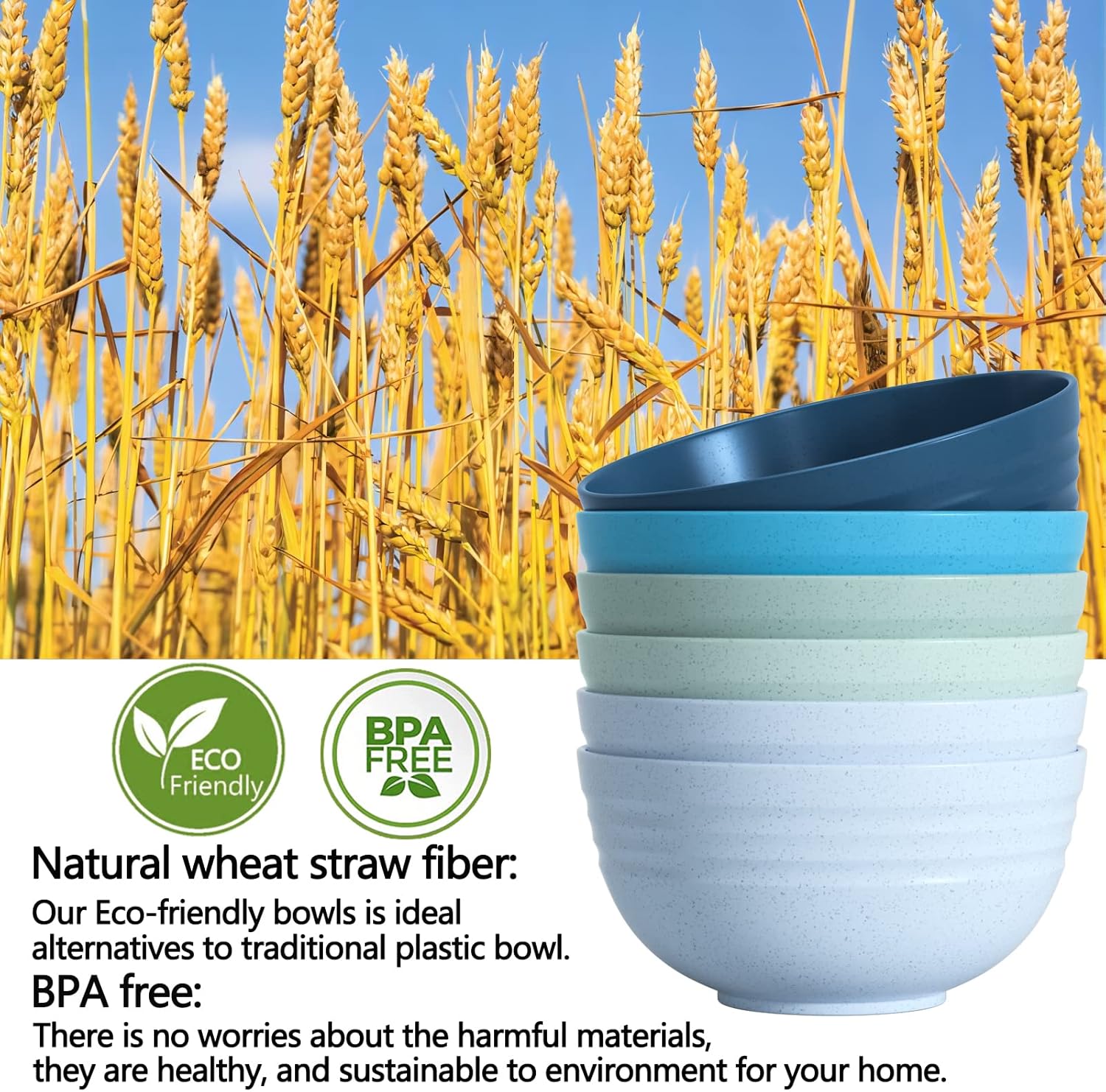 - 🌾Eco-Friendly Bowls-Homestockplus salad bowl made of natural organic wheat straw fiber, 100% BPA free, non-toxic, odorless and environmentally friendly. No harmful chemical materials. It’s healthy and beautiful tableware for your family.