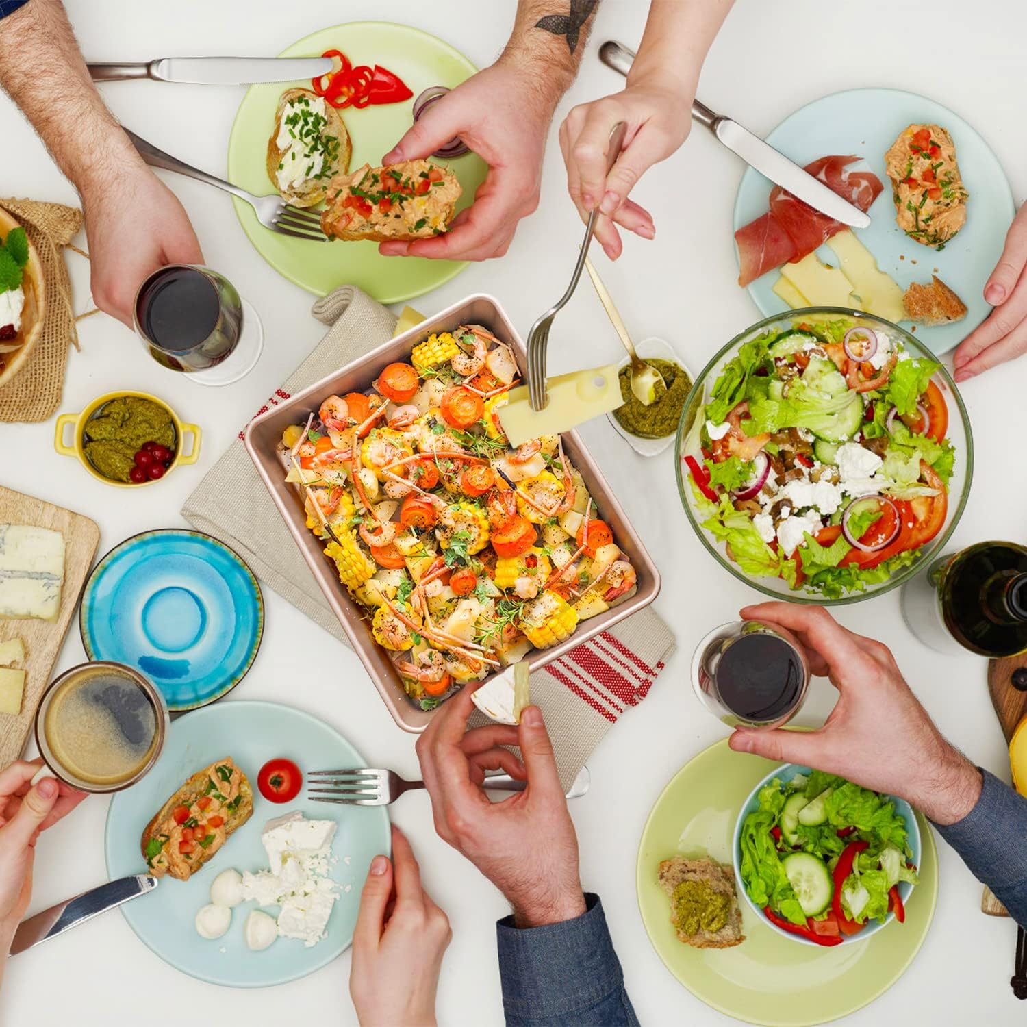 - Non-stick, Easy to Clean- The non-stick baking sheet has great mirror finish to reduce the risk of food sticking, easy to release the food while effectively reducing grease adsorption, makes it easy to clean up, just rinse the rectangle cake pan oven pan under water or run through the dishwasher