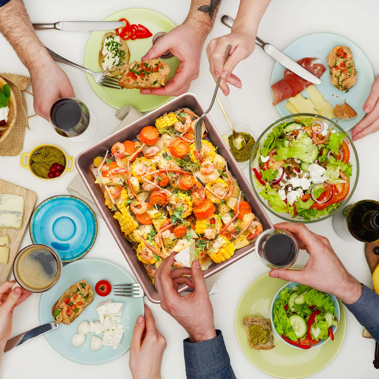 - Versatile Baking Pans- These baking sheet cookie sheet toaster oven pan rectangle cake pan is suitable for cooking, baking and roasting brownie, biscuits, casserole, lasagna, meatloaf, Roasting chicken, meat, beef, fish, vegetables and more. These pans also can be used as serving tray, cookie sheet, towel tray, etc