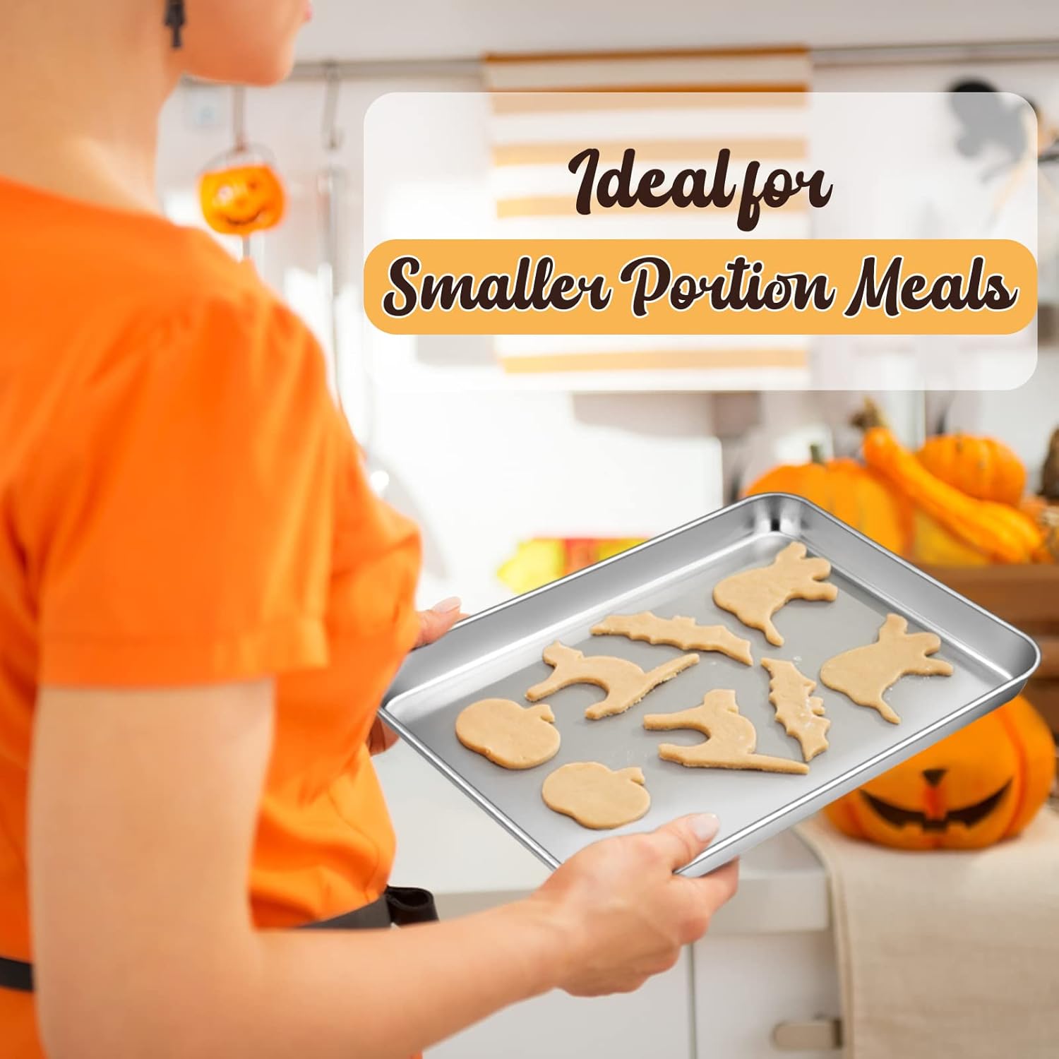 - 1 PAN + 1 RACK - Including 1 cookie sheet 10.5 x 8.3 x 1 inch and 1 cooling rack 9.7 x 7.3 x 0.6 inch, Fits most regular oven and toaster oven, Work perfectly together and also can be used separately, Ideal for smaller portion meals from baking and cooling cookies, pastries, and breads to roasting cuts of meats and vegetables