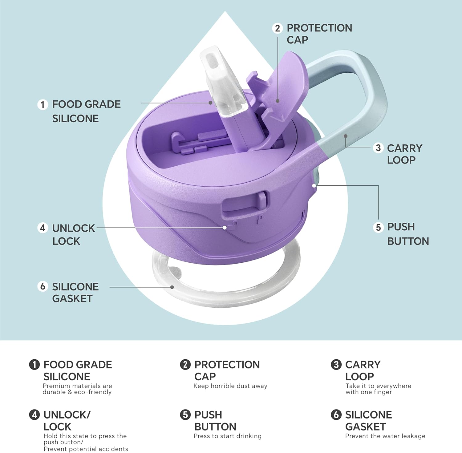 IDEUS Insulated Stainless Steel Water Bottle with 2 Leak-Proof Lids, Thermal Water Flask for Hiking Biking, 40oz, Violet