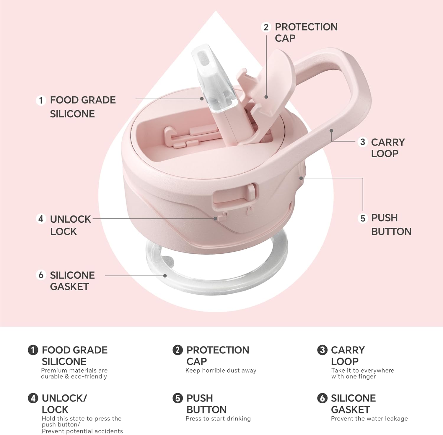 IDEUS Insulated Stainless Steel Water Bottle with 2 Leak-Proof Lids, Thermal Water Flask for Hiking Biking, 32oz, Light Pink