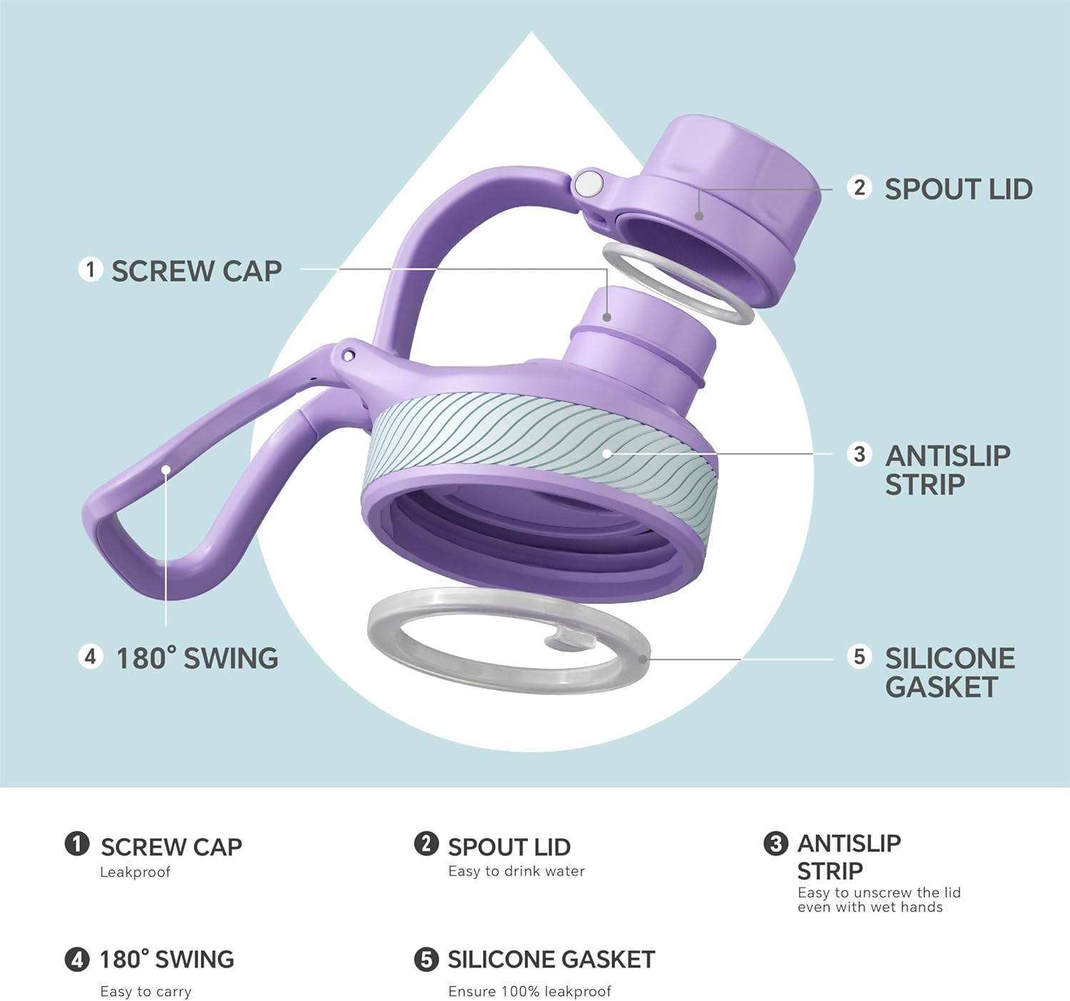 IDEUS Insulated Stainless Steel Water Bottle with 2 Leak-Proof Lids, Thermal Water Flask for Hiking Biking, 24oz, Violet