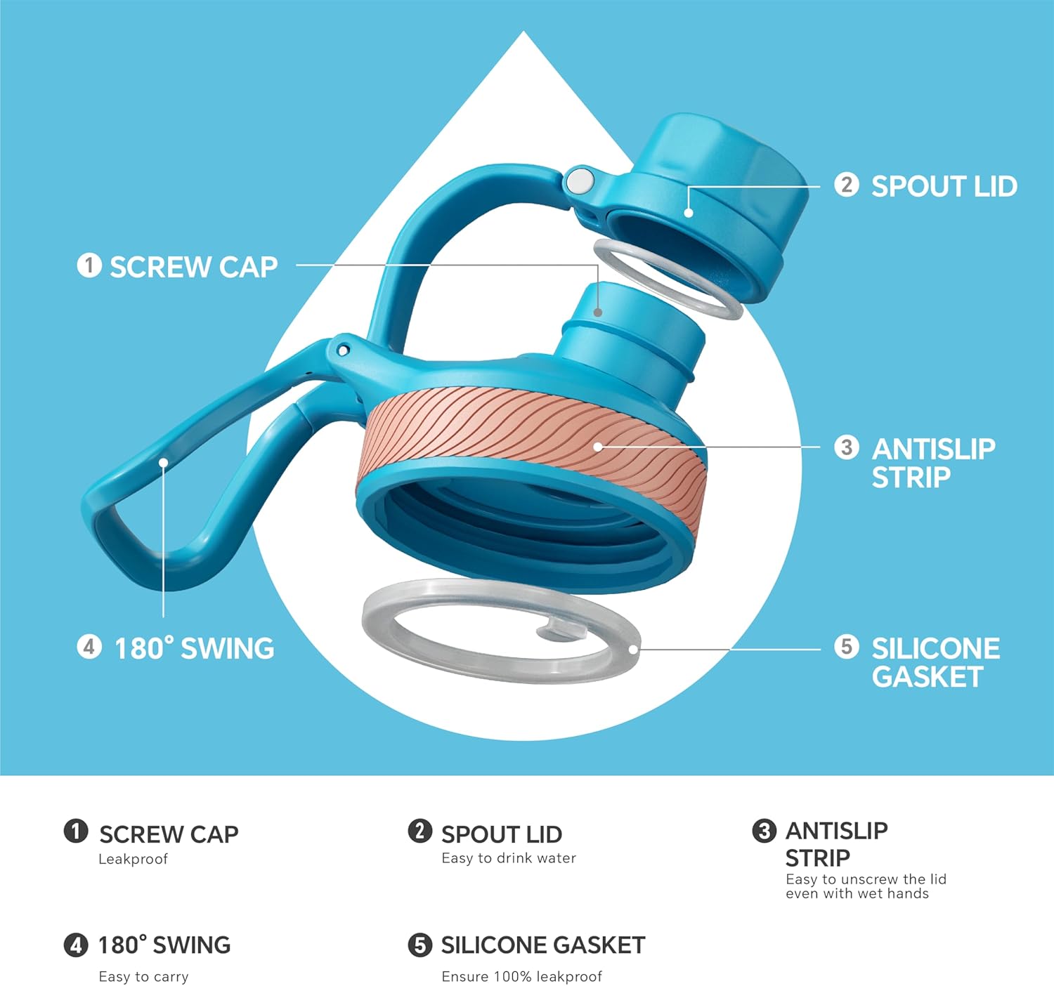 - 【Easy To Use】 - The stainless steel water bottles come with 2 types of lids -- one-touch pop-up straw with safety lock and a spout lid. Our sweetie bottie is lightweight and easy to carry, your sweetie can stay hydrated no matter where they go.