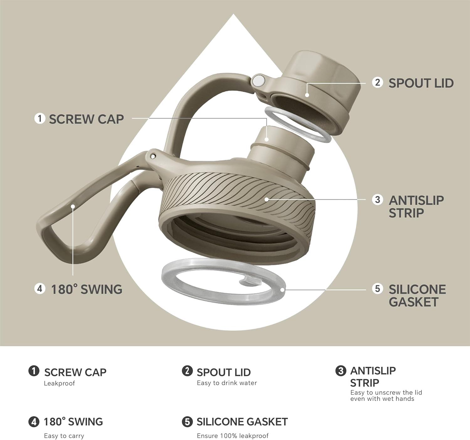 - LEAKPROOF -This design is for those who are constantly on the go in today's busy world. This insulated water bottle comes with an innovative, leakproof, sport lid that allows for easy one-handed drinking or pouring. Put the sports bottle in your bag freely without worrying about wetting other items.