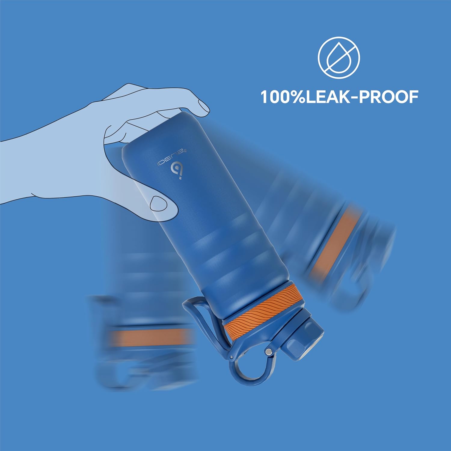 IDEUS Insulated Stainless Steel Water Bottle with 2 Leak-Proof Lids, Thermal Water Flask for Hiking Biking, 18oz, Bright Blue