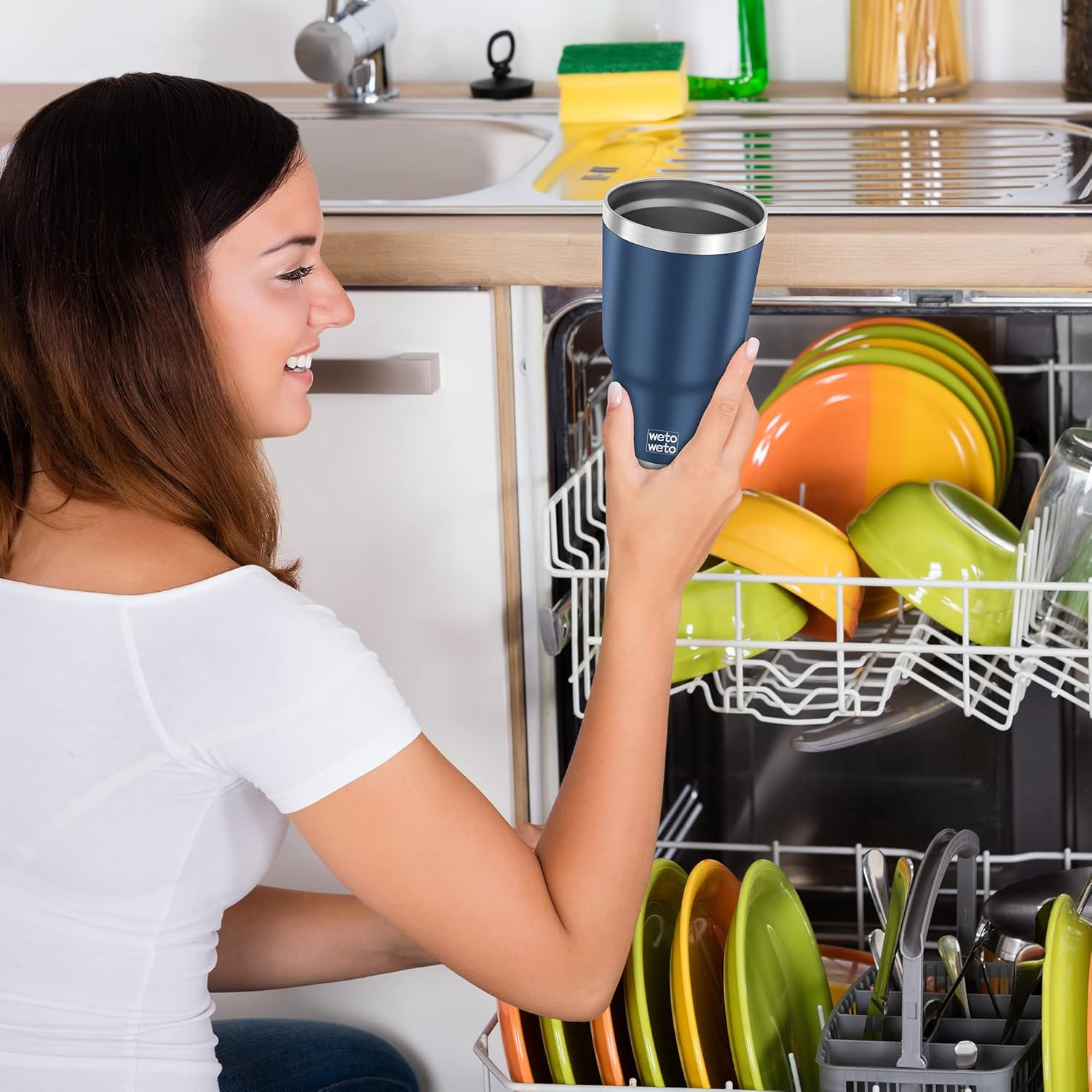 WETOWETO 30 oz Tumbler Stainless Steel Vacuum Insulated Coffee Cup Double Wall Vacuum Coffee Cup Thermal Cups for Hot and Cold drinks, Suitable for Beach, Travel (Navy Blue, 1 Pack)