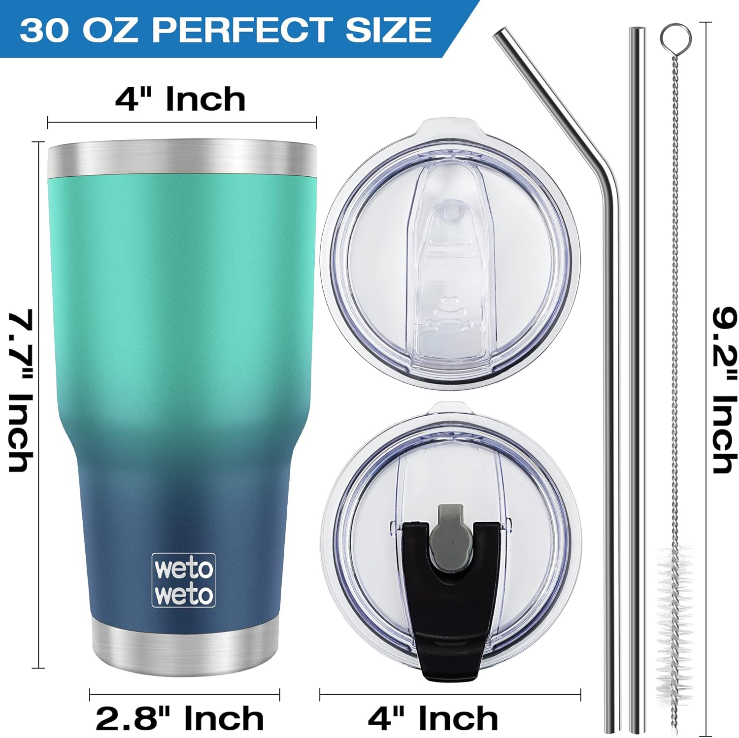 WETOWETO 30 oz Tumbler with 2 Straws and 2 Lids, Stainless Steel Insulated Vacuum Coffee Tumbler Cup, Double Wall Leakproof Travel Mug (Green-Blue Gradient, 1 Pack)