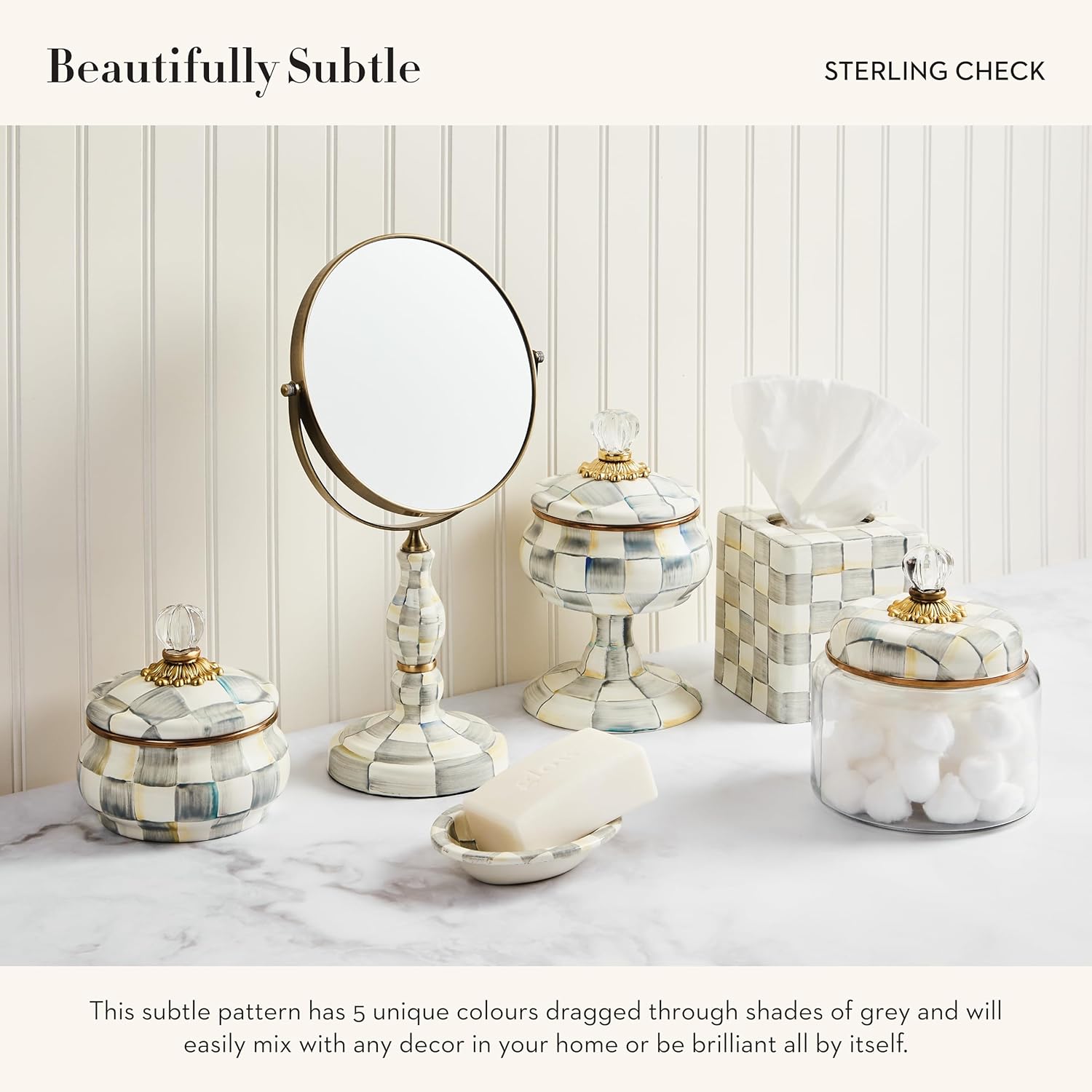 MACKENZIE-CHILDS Enamel Squashed Pot, Cute Enameled Container with Lid, 20 Ounces, Gray-and-White Sterling Check