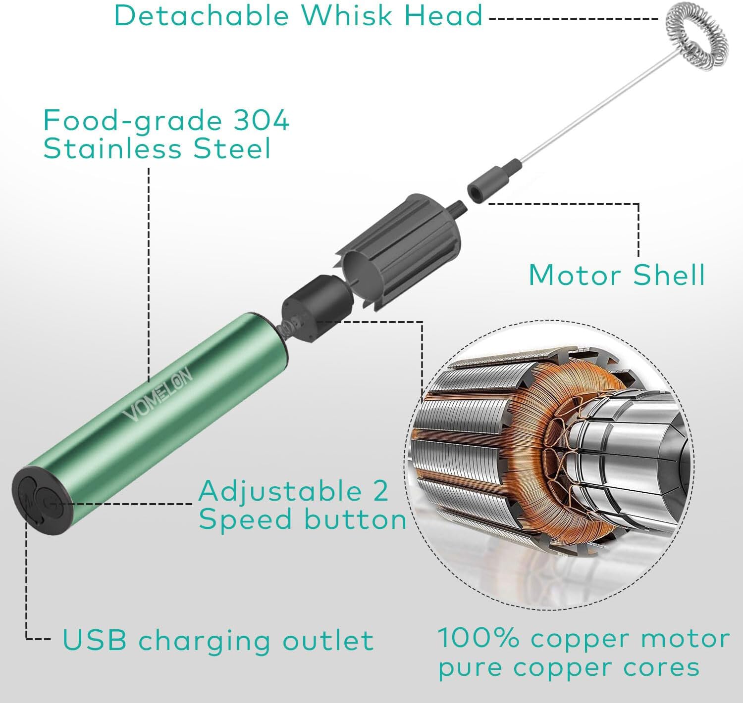 - ✅ EASY TO CLEAN: The detachable food grade premium stainless steel whisk heads are easy to clean: just run under water and use soap if needed, or clean in the dishwasher. Milk frother electric can stand on the table or countertop by itself without any stand. It’s lightweight and economical design, easy to store for any kitchen.