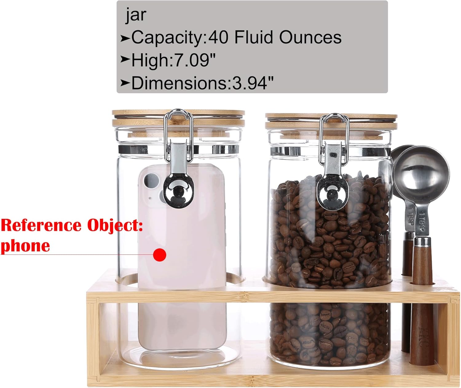 KKC Glass Coffee and Sugar Containers with Airtight Hinged Lids,Sealed Glass Jar Canisters with Scoops for Ground Coffee,Beans,Loose Leaf Tea,Nuts,Matcha,40 Fl oz