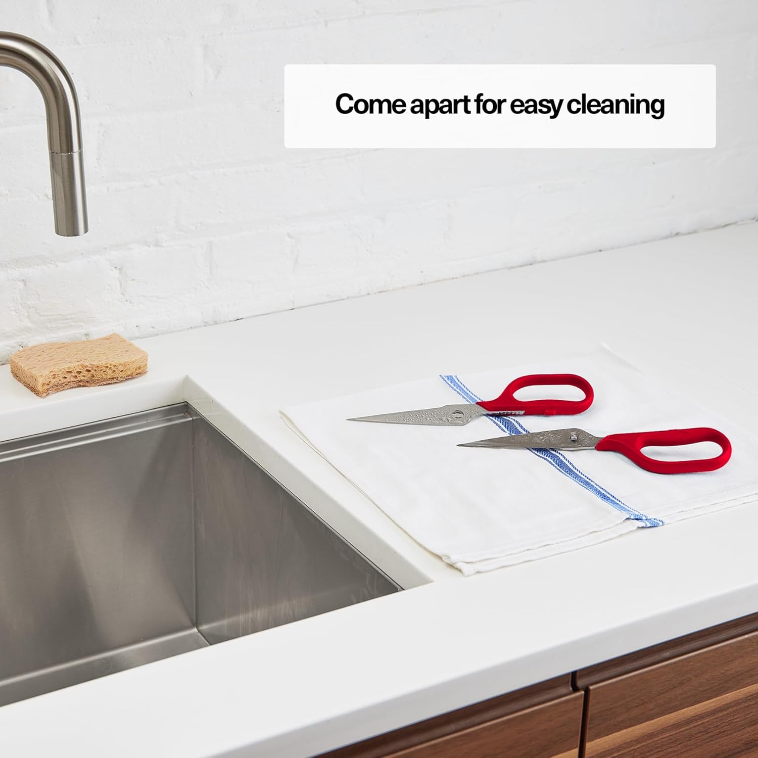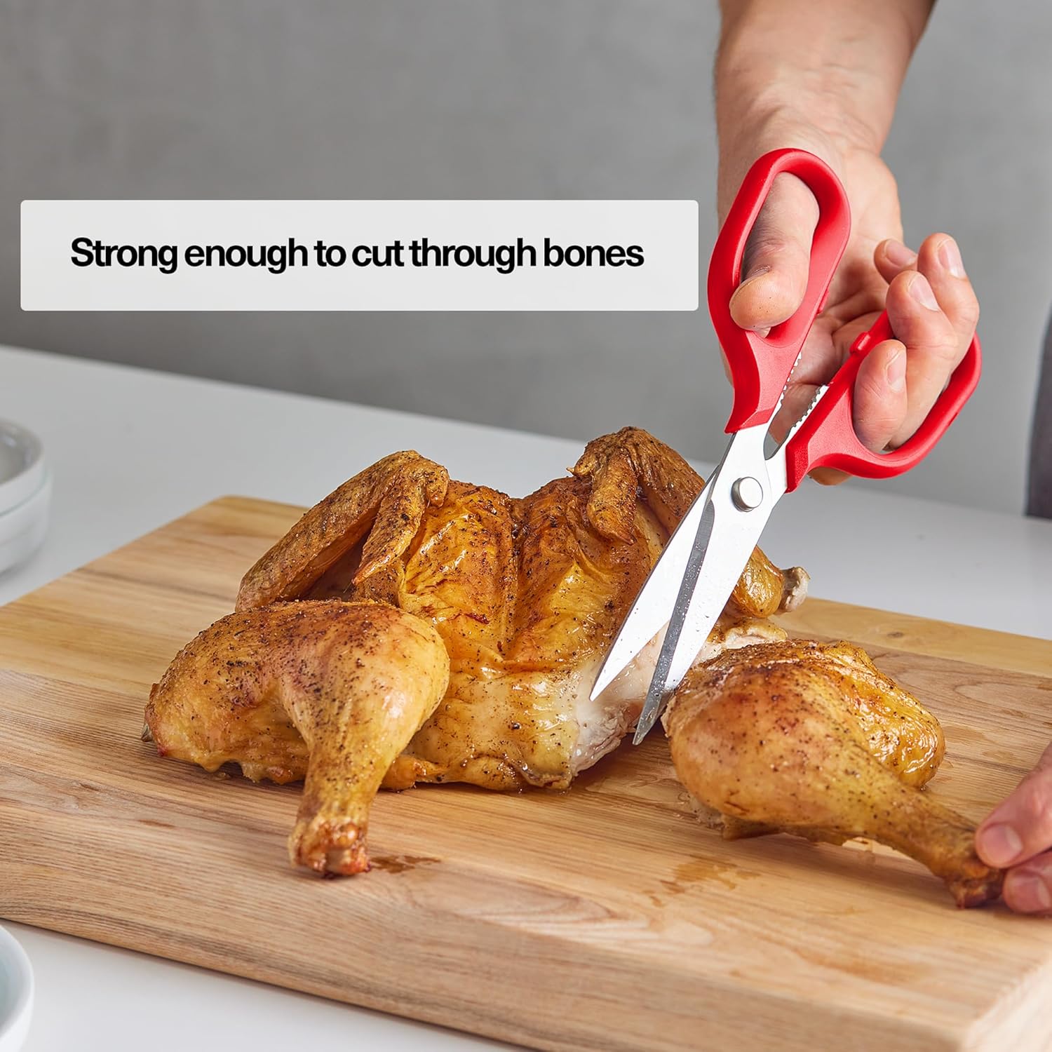 - Ultimate Kitchen Tool: Misen's professional-grade red scissors are not just any regular tool - they redefine versatility in the kitchen landscape. They can tackle any job in the kitchen or around the house. Easily debone an entire chicken, snip fresh herbs, slice up a pizza, or even just use them to open up your Amazon packages. There's a million uses for these around the kitchen and house.