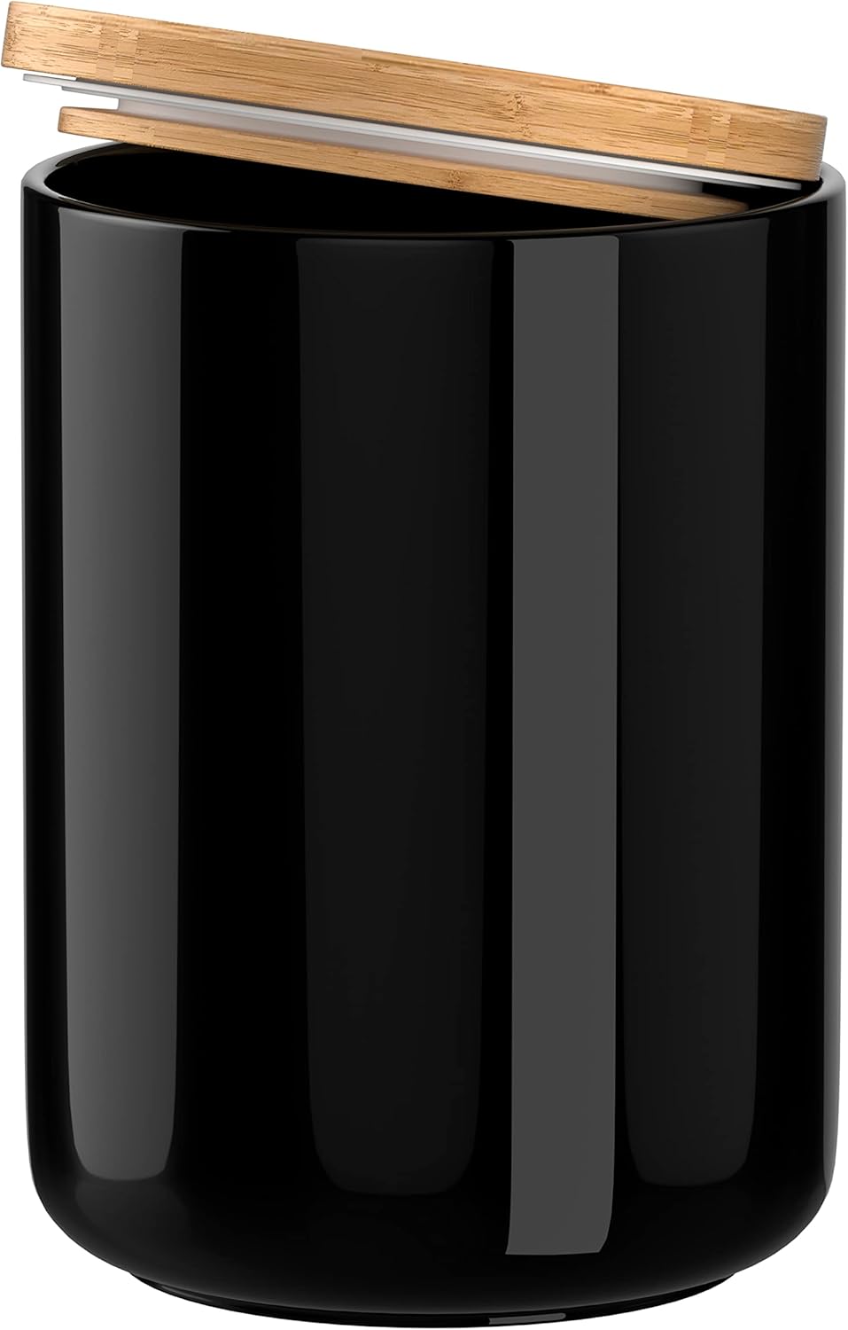 ALYC White Ceramic 1050mL 4 cup Food Storage Canister with Airtight Bamboo Lid and Silicone Seal Container for Counter - Great for Flour Coffee Sugar Treat Snack Caddy (Black)