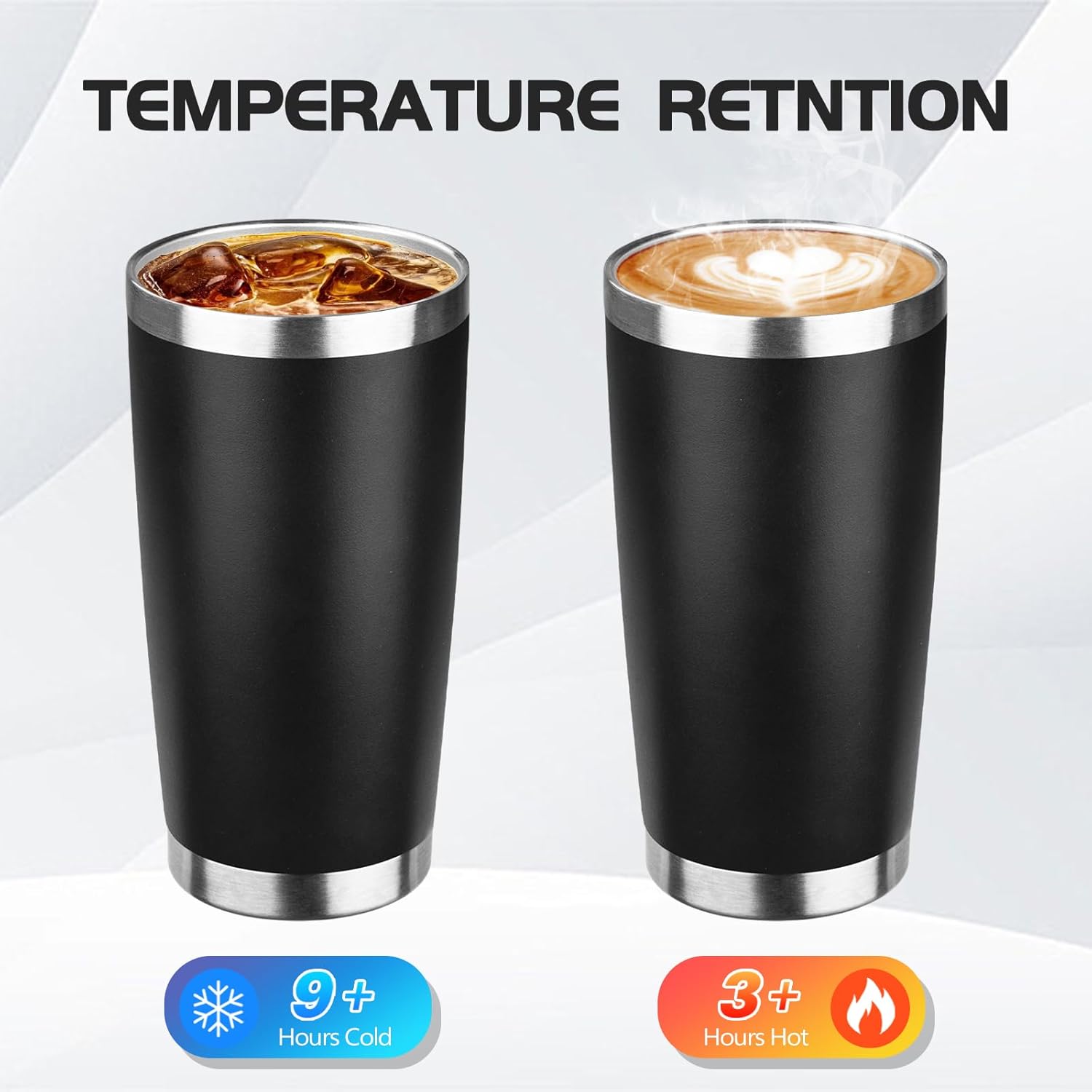 - BPA Free Lid: Stainless steel tumbler set with lid and an opening for drinking, be aware of how hot your coffee is before taking a sip. Under normal temperature, the insulated coffee cup keep your water hot for three hours and cold for nine hours