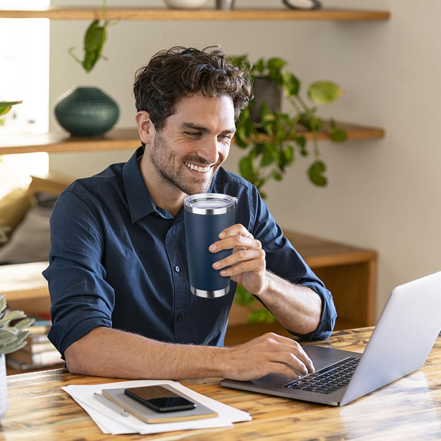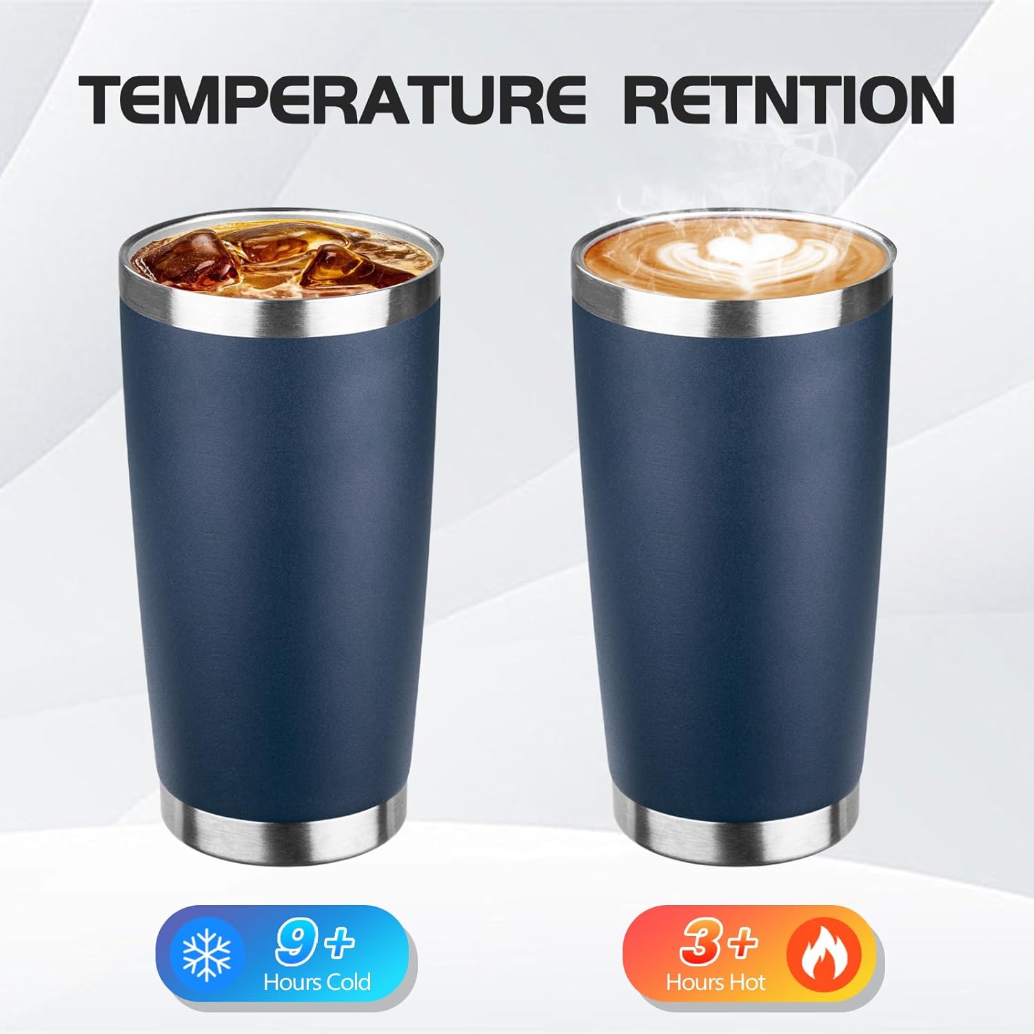StarSpeed 20oz Tumbler Bulk with Lid, Stainless Steel Insulated Tumblers Double Wall Vacuum Insulated Travel Mug, Powder Coated Coffee Cups for Hot and Cold Drinks(Navy Blue,8)
