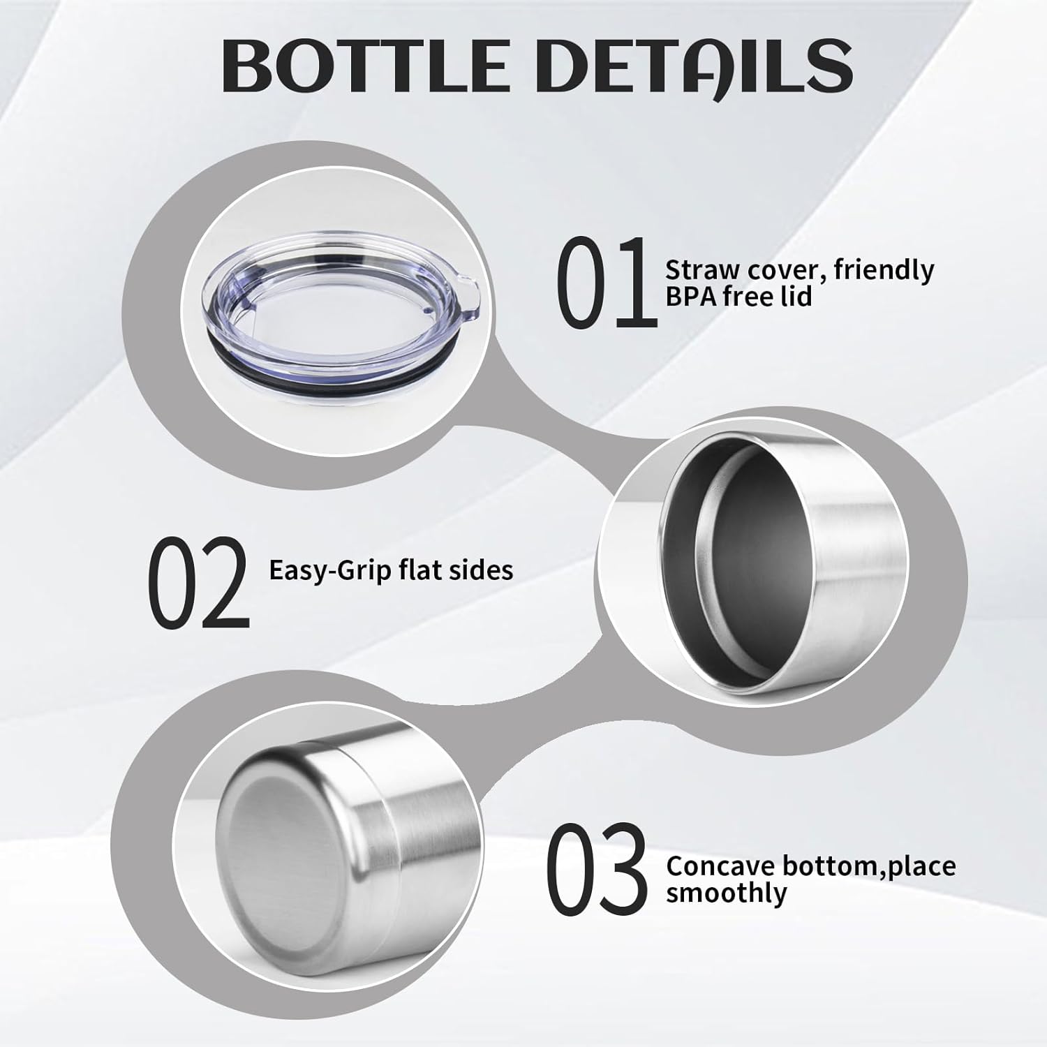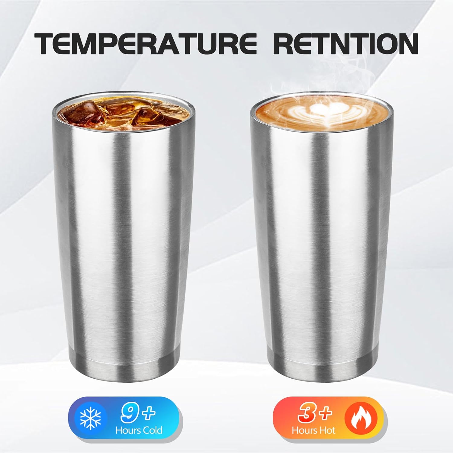 - BPA Free Lid: Stainless steel tumbler set with lid and an opening for drinking, be aware of how hot your coffee is before taking a sip. Under normal temperature, the insulated coffee cup keep your water hot for three hours and cold for nine hours