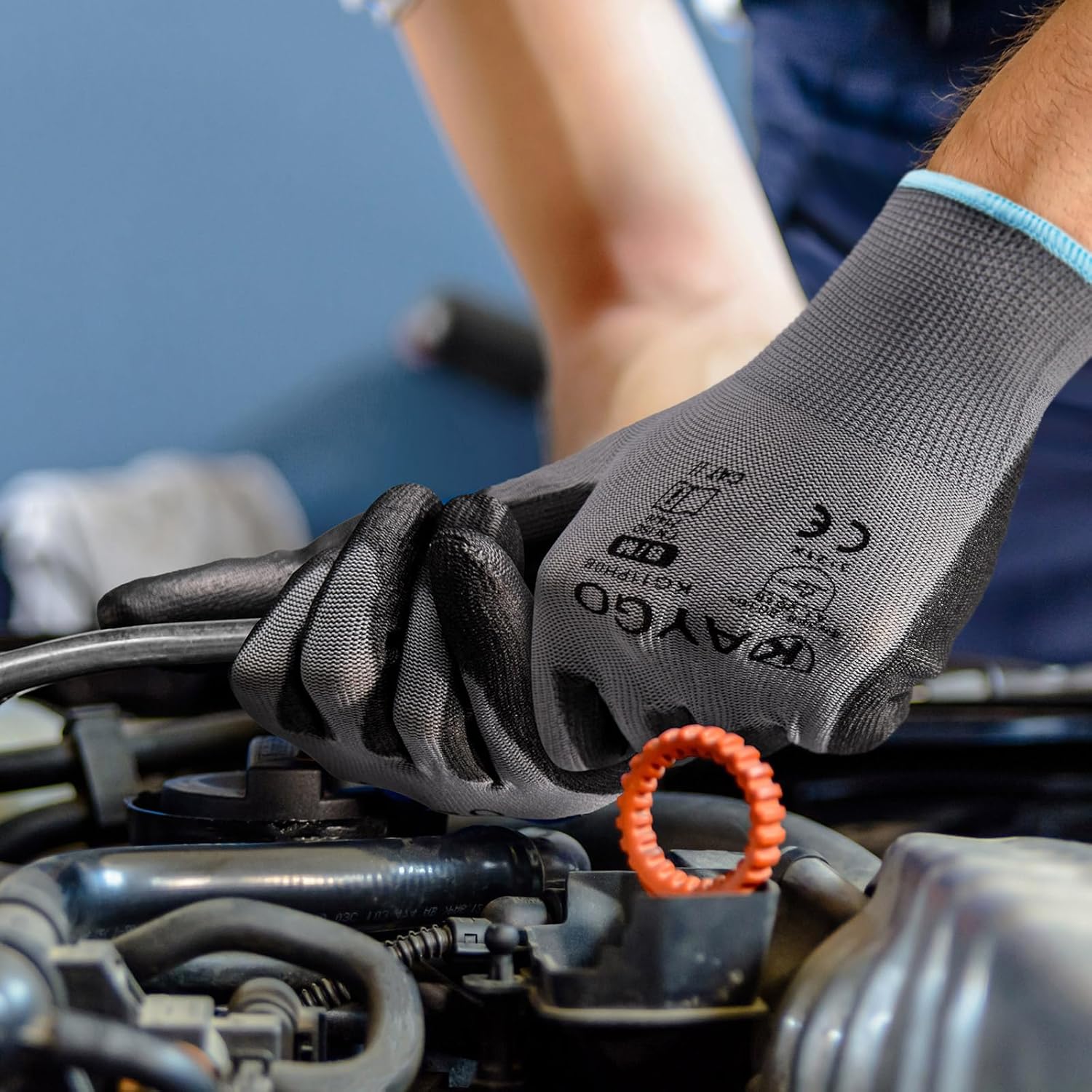 - Abrasion Resistance: The polyurethane-coated palms and fingertips provide a secure grip in dry and slightly wet/oily conditions while maintaining high dexterity and tactile sensitivity, making them ideal for precise tasks