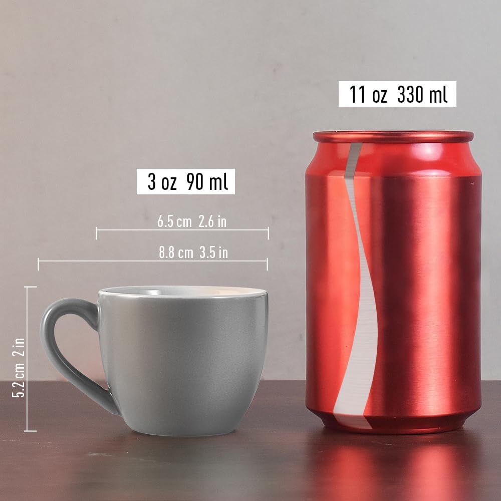 - The capacity of the cup is 3 ounces / 90 ml. Besides holding the temperature, it's suitable for your espresso and double espresso. Note: It's a tiny size cup for espresso.