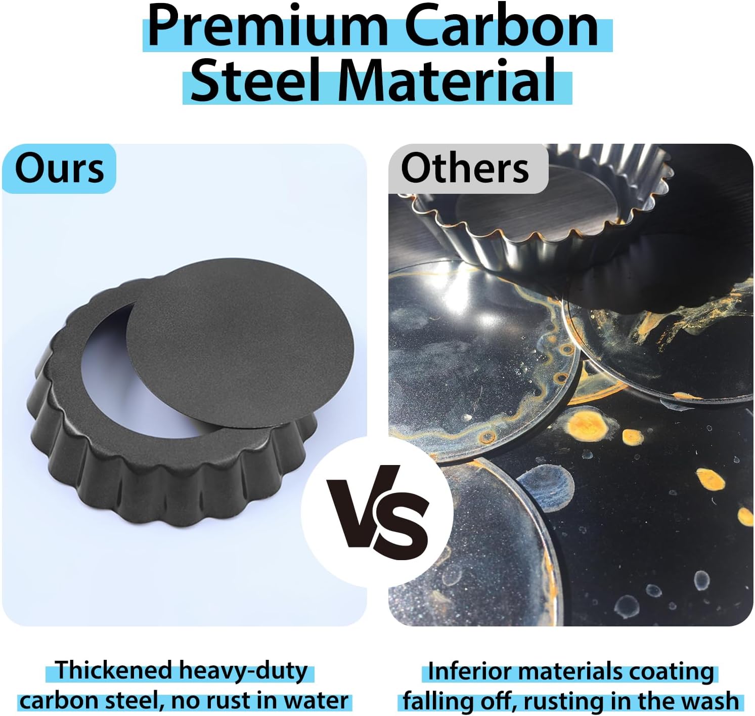 - Removable Bottom Design: Thanks to the ingenious removable bottom design of egg tart mold, making delicious food is easy which helps you remove the dessert from the fluted metal tart pan with little effort. Prevent cracking and breaking, also provides additional cooling and good baking effect. Avoid leakage and wide enough to support the crust for easy removal.