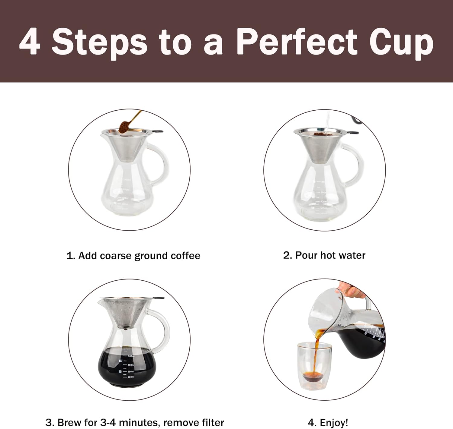 - 【BPA-FREE GLASS】Our pour over coffee maker is made using strong, non-porous borosilicate glass which is more resistant to high temperature and cold and will not absorb odors or chemical residues, BPA-free, so you'll be brewing in this coffee maker for years to come. And our pour over drip coffee makers with accurate measurement marking lines help you brew like a pro.