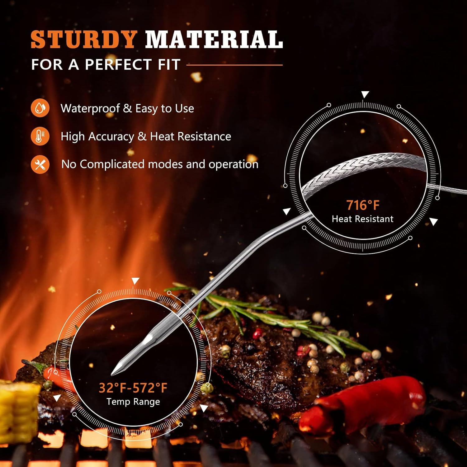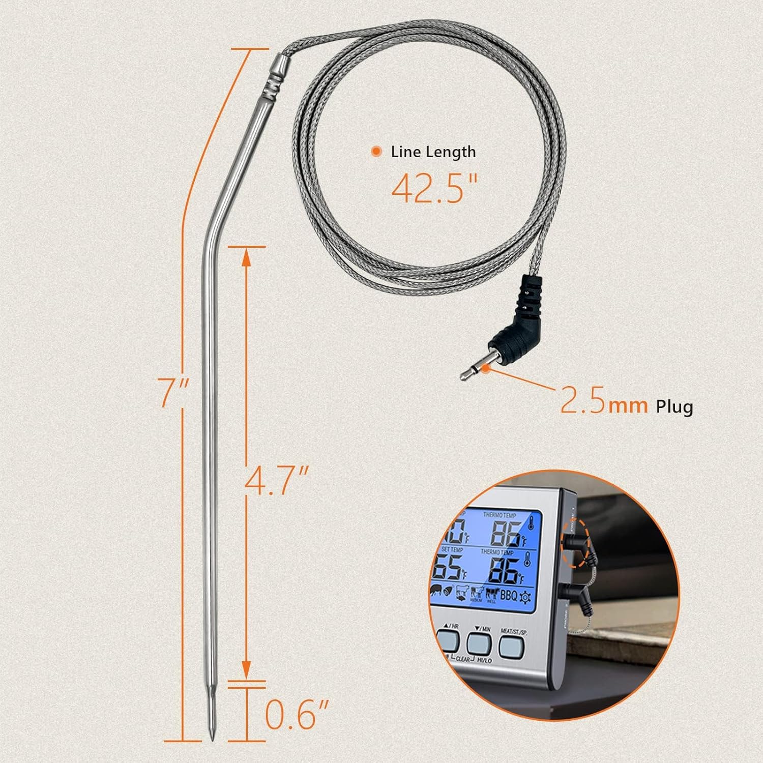 Meat Thermometer Probe Replacement for Thermopro Thermometers TP04, TP06, TP06S, TP07, TP07S, TP08, TP08S, TP09, TP09B, TP10, TP16, TP-16S, TP17, TP20, TP25, 2.5mm