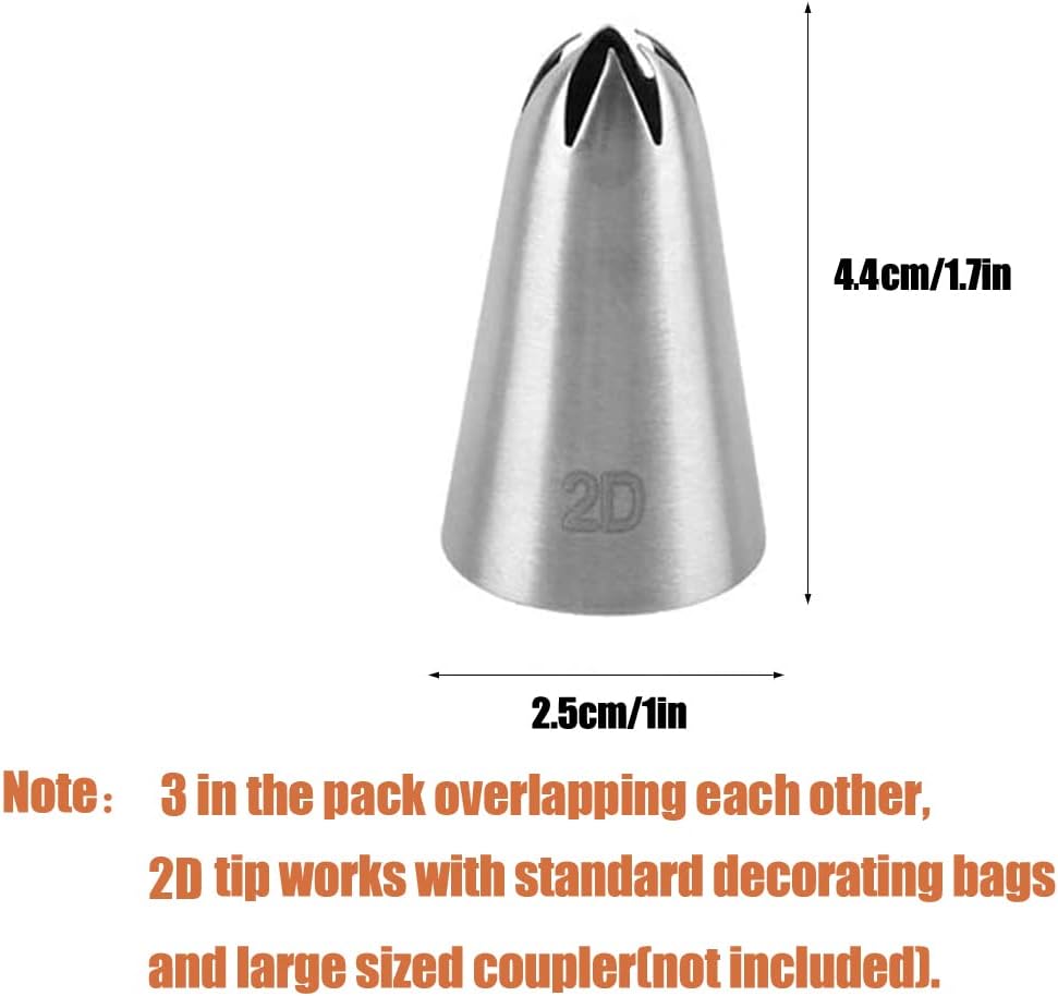 2D Icing Tip,Large Drop Flower Piping Tip,2D Tip for Cake Decorating,Open Star,3 Pcs