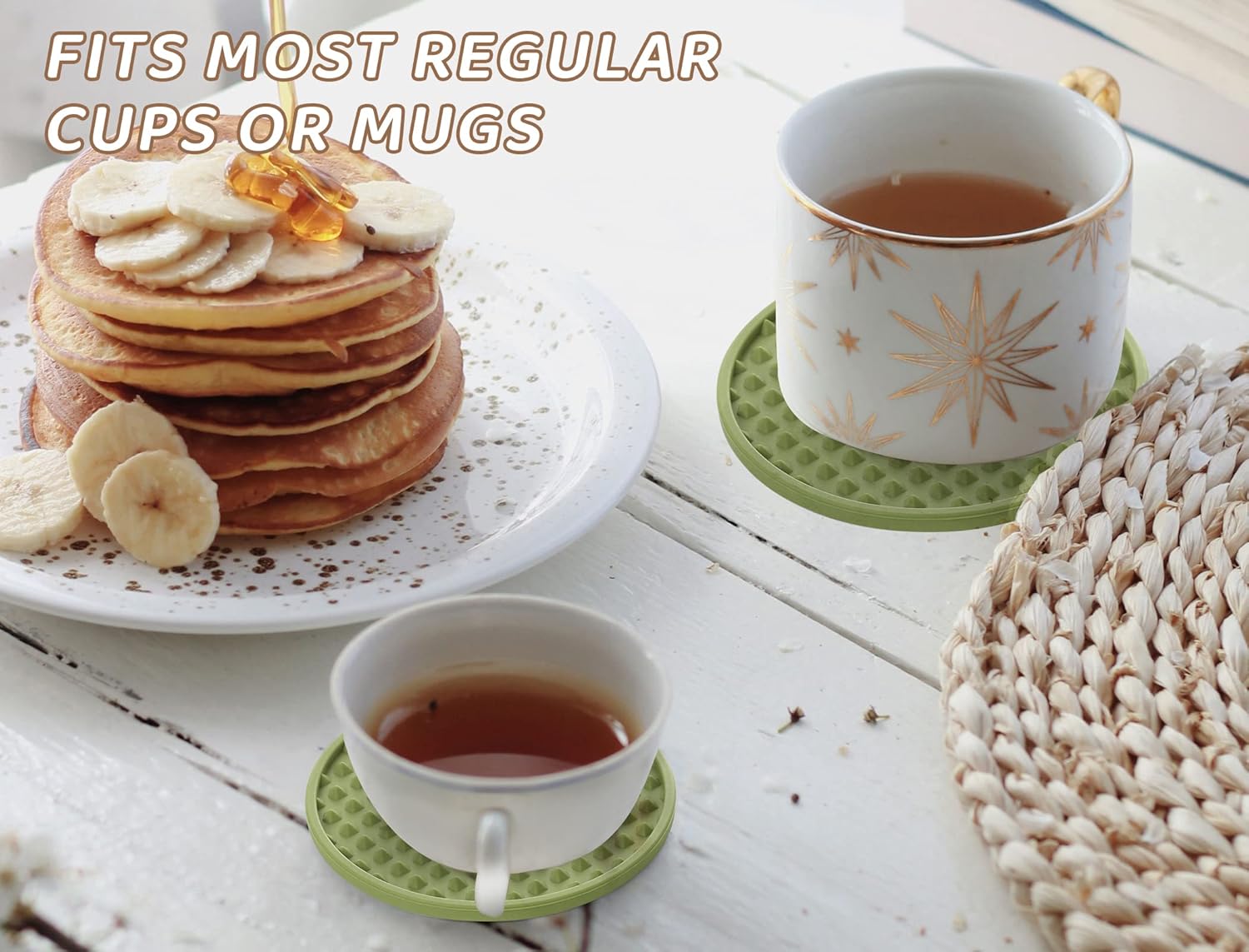 Coasters for Drinks 6 Pack Drink Coaster with Holder,Heat Resistant Silicone Cup Mat Tabletop Protection,Non-Slip Rubber Coasters for Kinds of Cups (Green)