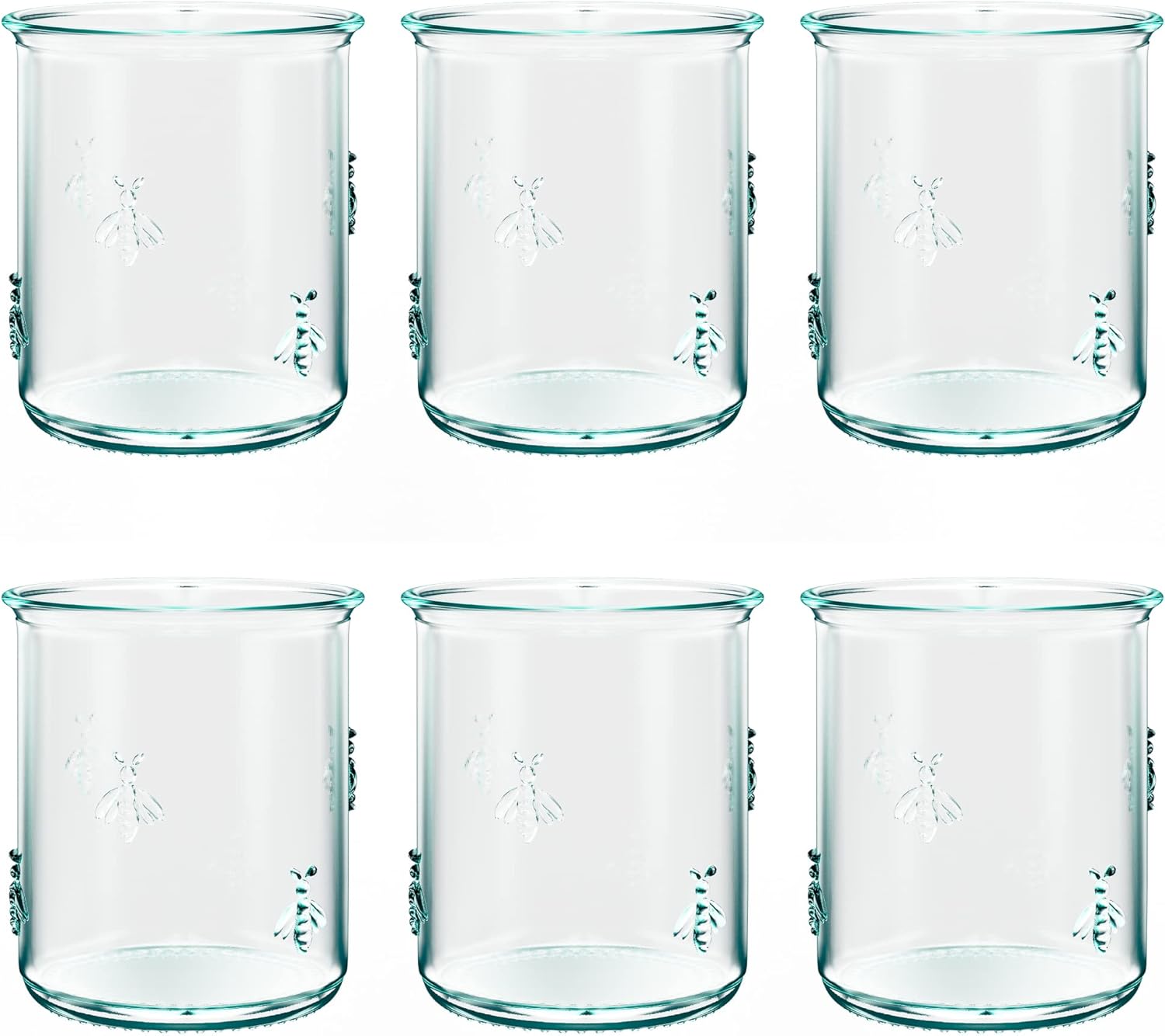 Amici Home Regina DOF Glass | 12 Oz | Italian Made, Recycled Green Glass | Drinking Glass with Embossed Bee Design for Water, Juice, Iced Tea, Cocktails (Set of 6)