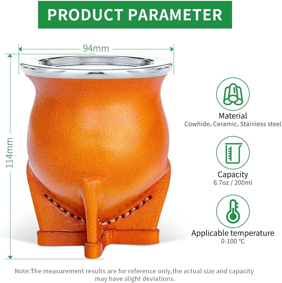 - 【The main design of mate cup】CUOPRU mate tea cup has ceramic inner struction for anti scald, the outer layer made in leather, and the cup mouth is designed with 304 stainless steel. which can prevent different types of corrosion well.