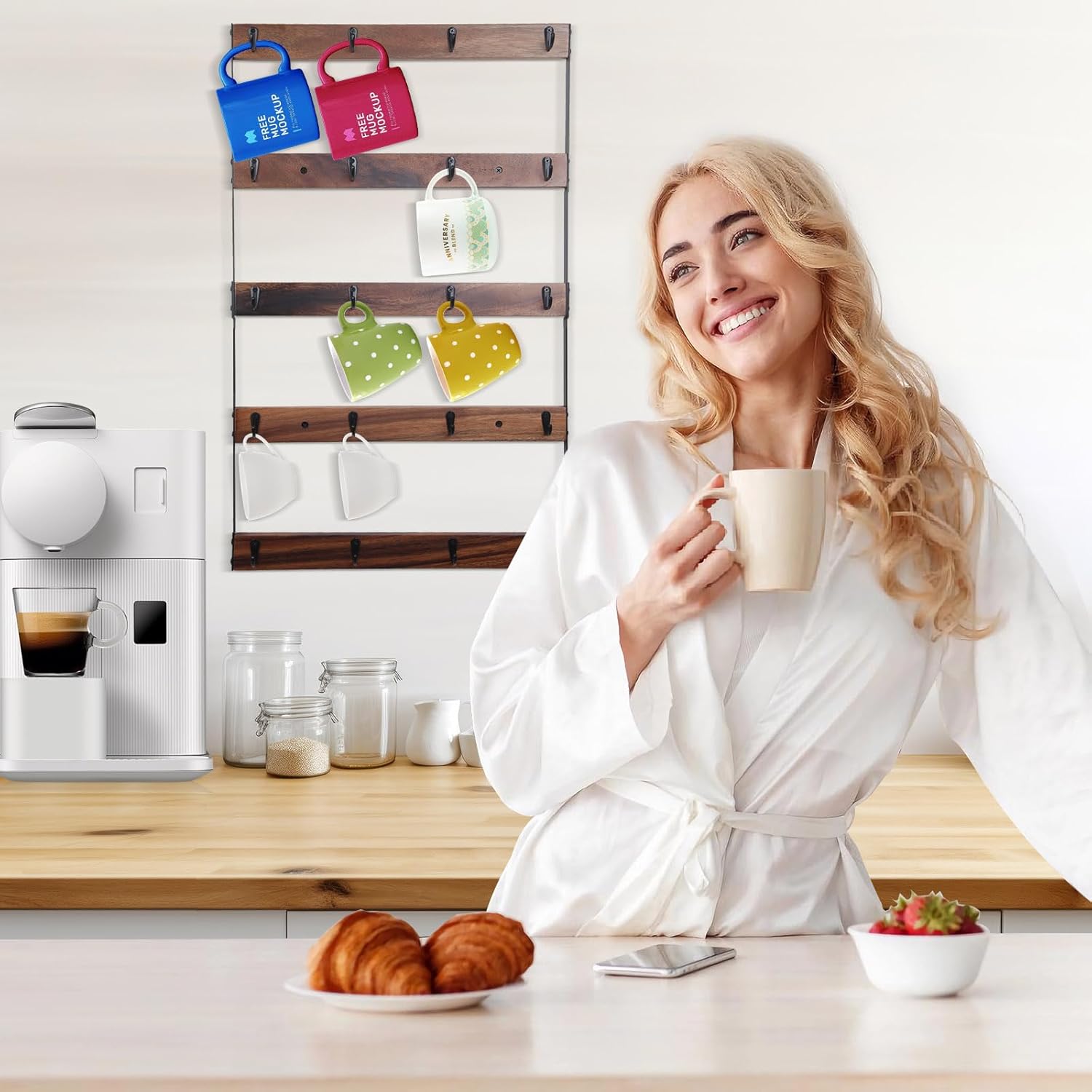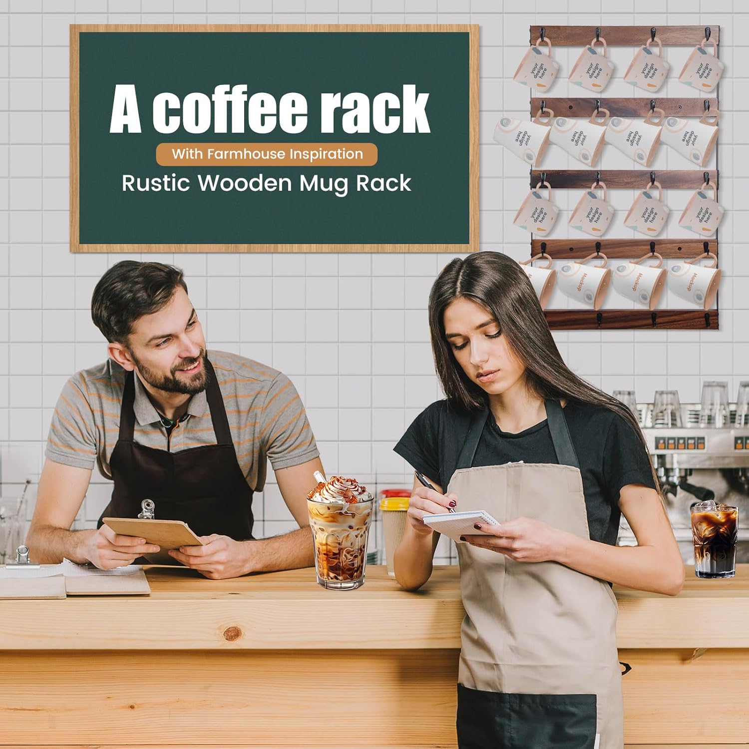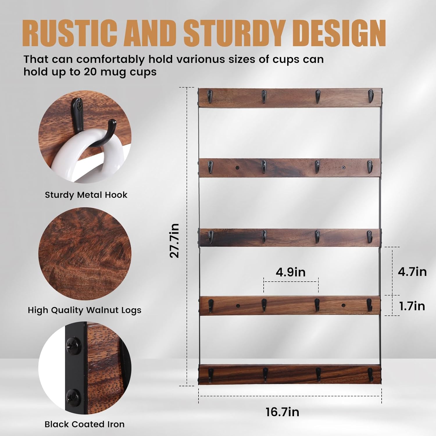 - 【Large Capacity】:Hold 20 mugs total on the rustic hooks and features with 5 total tiers,this coffee mug rack not only make the most use of wall space ,but also organize your coffee mugs in place for easy access