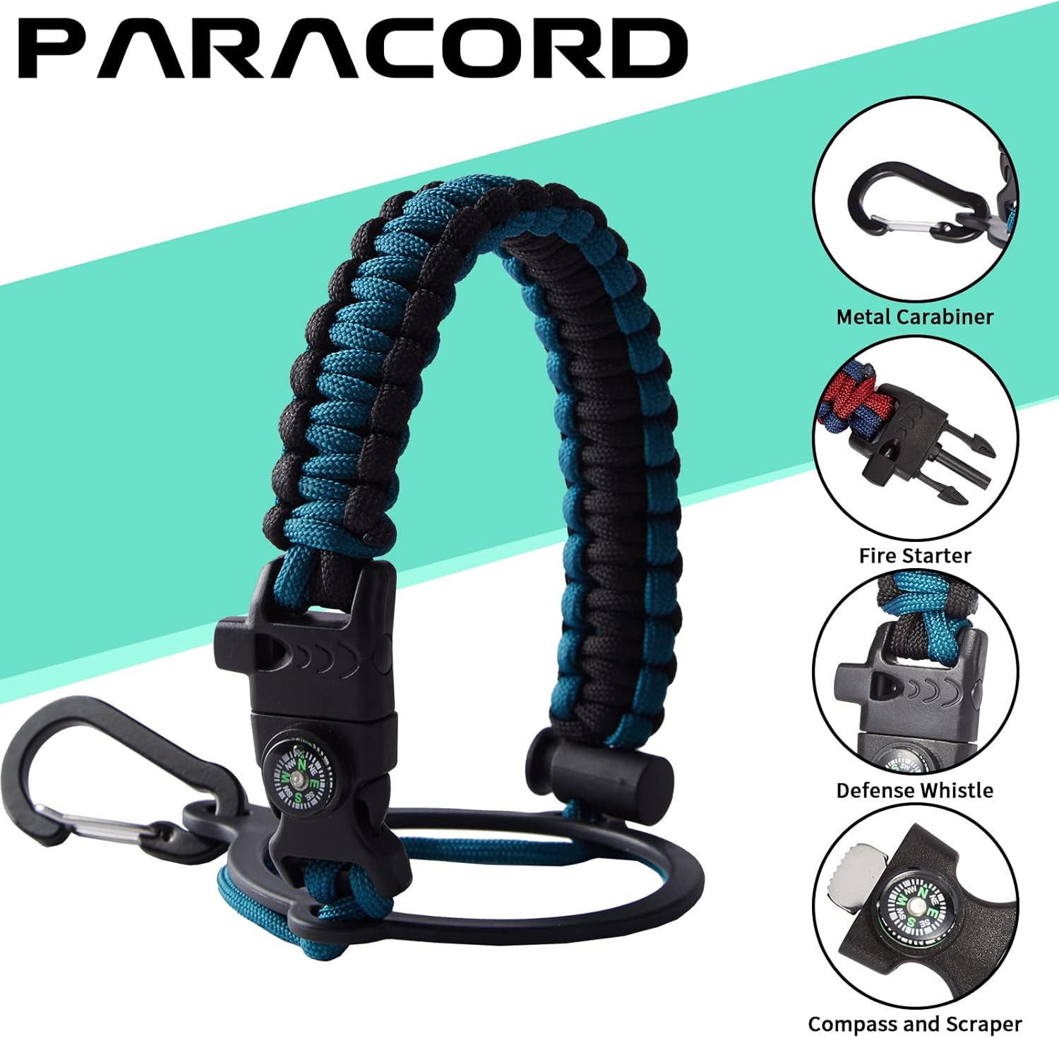 - UNIQUE PARACORD—Perfect Accessories: bright color paracord matches the flask water bottle to give you a youthful vibe while adding a personal style. It comes with a compass, safety loop, metal carabiner, flint, igniter, and whistle to become your survival tool for your wild adventures