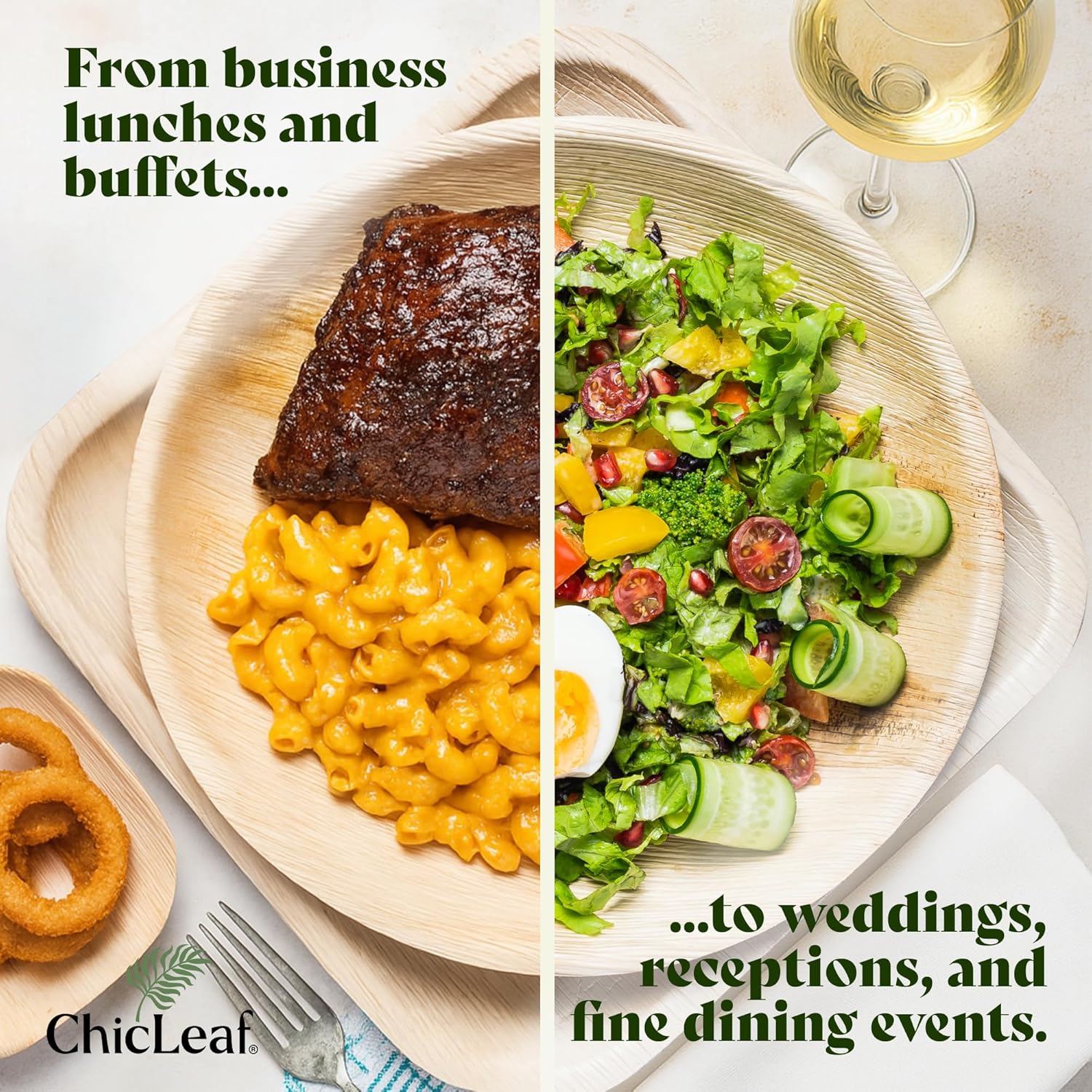 - Chic Leaf Elegance: Experience the sophistication of Chic Leaf Bamboo-Like Palm Leaf Plates, expertly crafted for eco-friendly dining. These biodegradable plates are a stylish alternative to traditional disposable dinnerware, perfect for enhancing any occasion