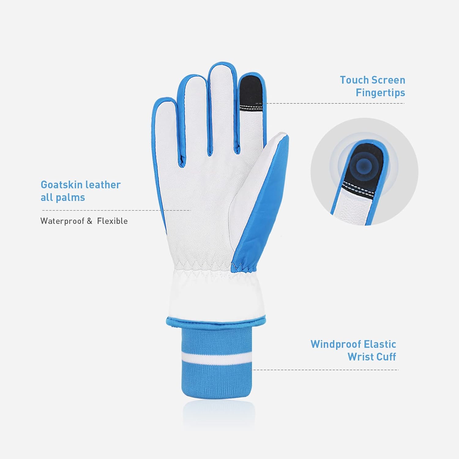 - Touch screen thumb and index fingers allowing you to tap and swipe easily on smart phones without having to take the waterproof ski gloves off in cold weather