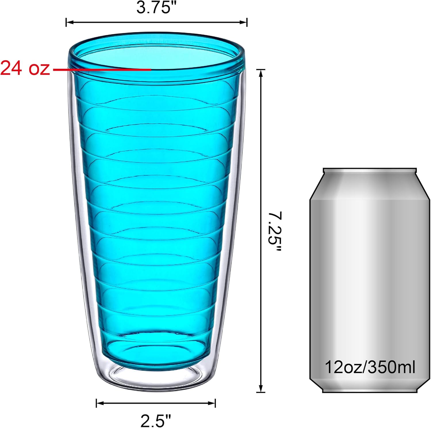 Amazing Abby - Alaska - 24-Ounce Insulated Plastic Tumblers (Set of 4), Double-Wall Plastic Drinking Glasses, Mixed-Color Reusable Plastic Cups, BPA-Free, Shatter-Proof, Dishwasher-Safe