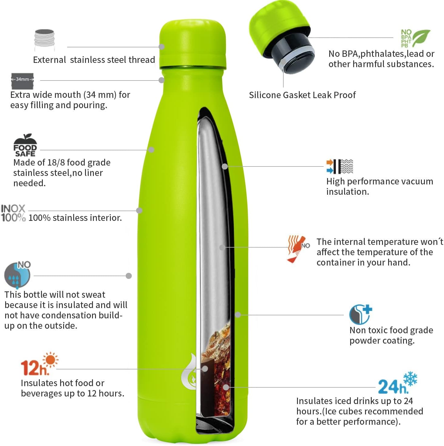 BJPKPK Stainless Steel Water Bottles 17oz Insulated Water Bottle for Travel,Green