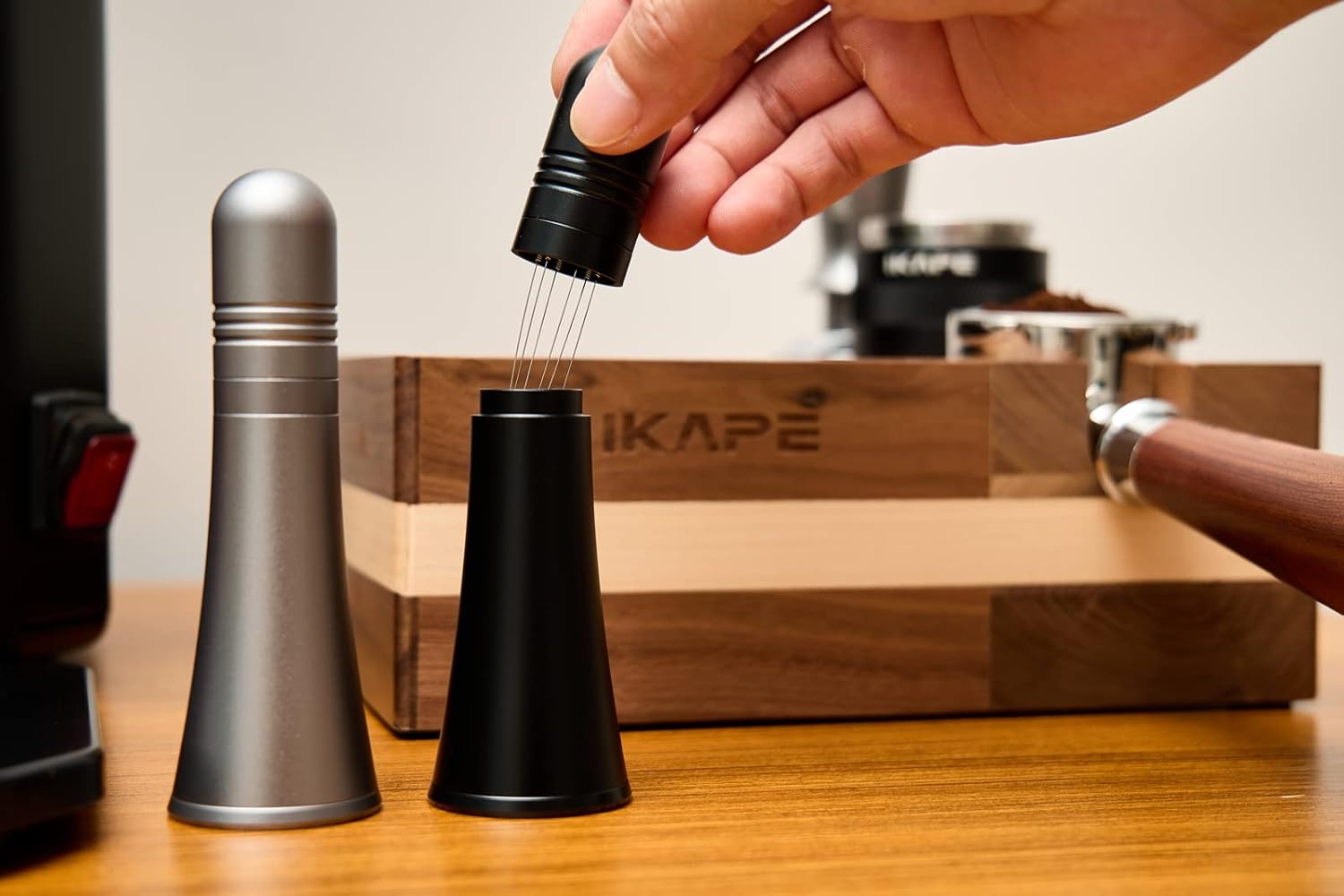 - IKAPE Professional Barista WDT Tool: This espresso stirrer is IKAPE's custom-made espresso distribution tool for baristas. It upgrades from the shape, the number and the strength of the espresso needles, and the position of the stirrer, which can bring a more comfortable experience for baristas, and is a must-have espresso coffee tool