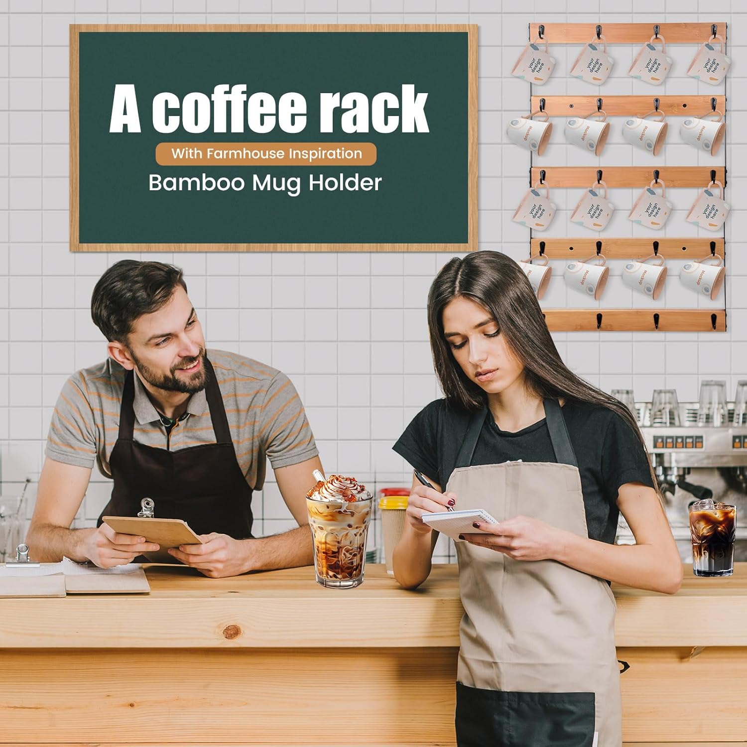 - 【Practical Mug Holder】- Combination of durable bamboo and black coated iron,which allow you to safe display your mugs. The rustic mug rack is widely use to home, kitchen and coffee station