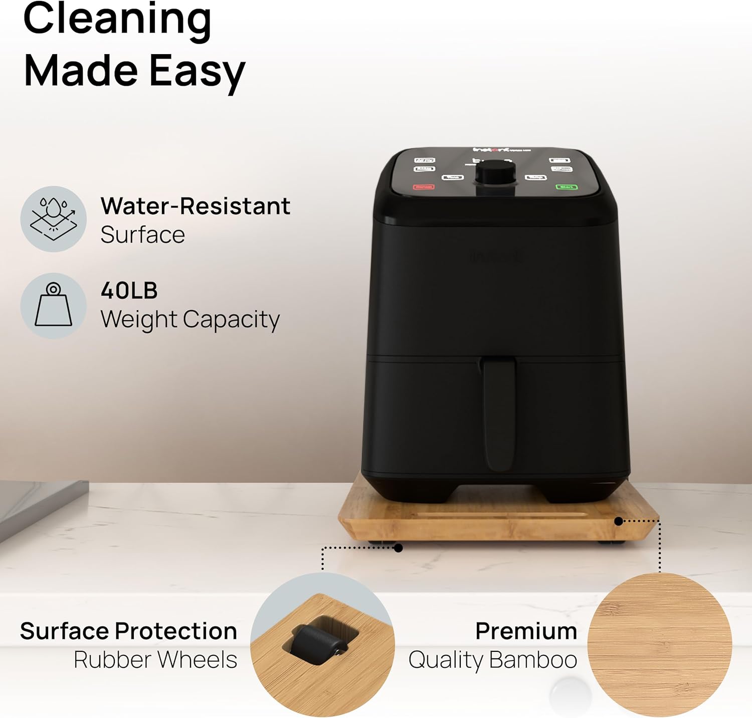 - ππππππππ π ππ πππ: With environmentally friendly bamboo, an elegant look to complement any kitchen, and top-quality quiet rubber wheels that let you quickly and quietly slide your appliances, this will quickly become your preferred kitchen accessory. If anything goes wrong, weβre here to make it right. Click Buy Now, and enjoy complete kitchen freedom today!