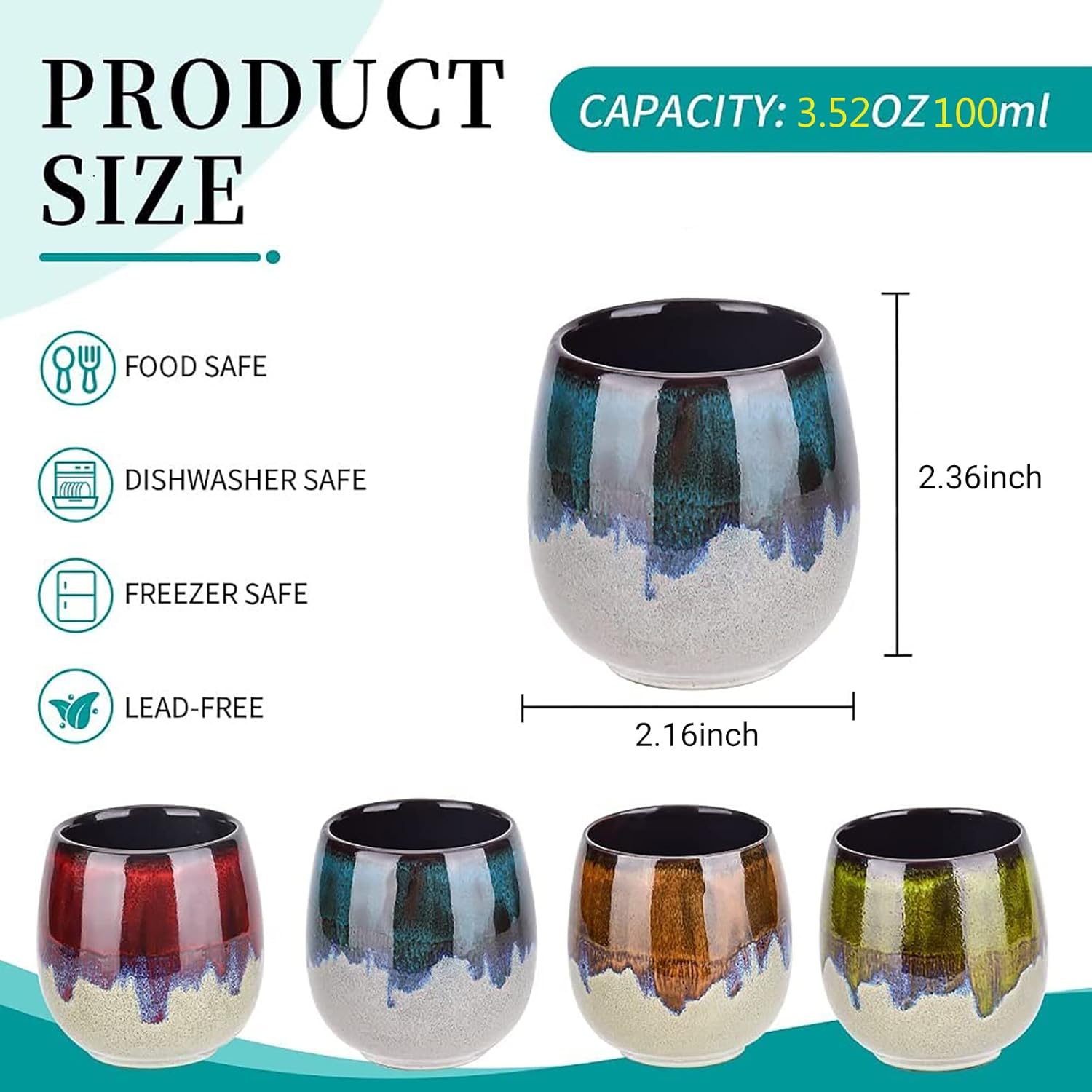 Ceramic Kiln-Change Espresso Cups Small Espresso Coffee Cups Set of 2 Spirits Cups Tasting Cups Ceramic Mate Cup 3Oz (Red)