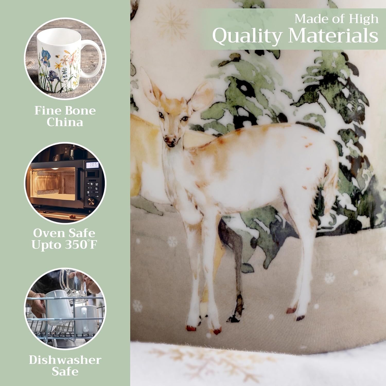 Maison d' Hermine Coffee Mug with Handles Fine Bone China Mugs Pack of One Tea Cups for Hot Beverages Cappuccino Latte Home Office Perfect for Gift (Deer In The Woods - Forest Deer, 15 Ounce)