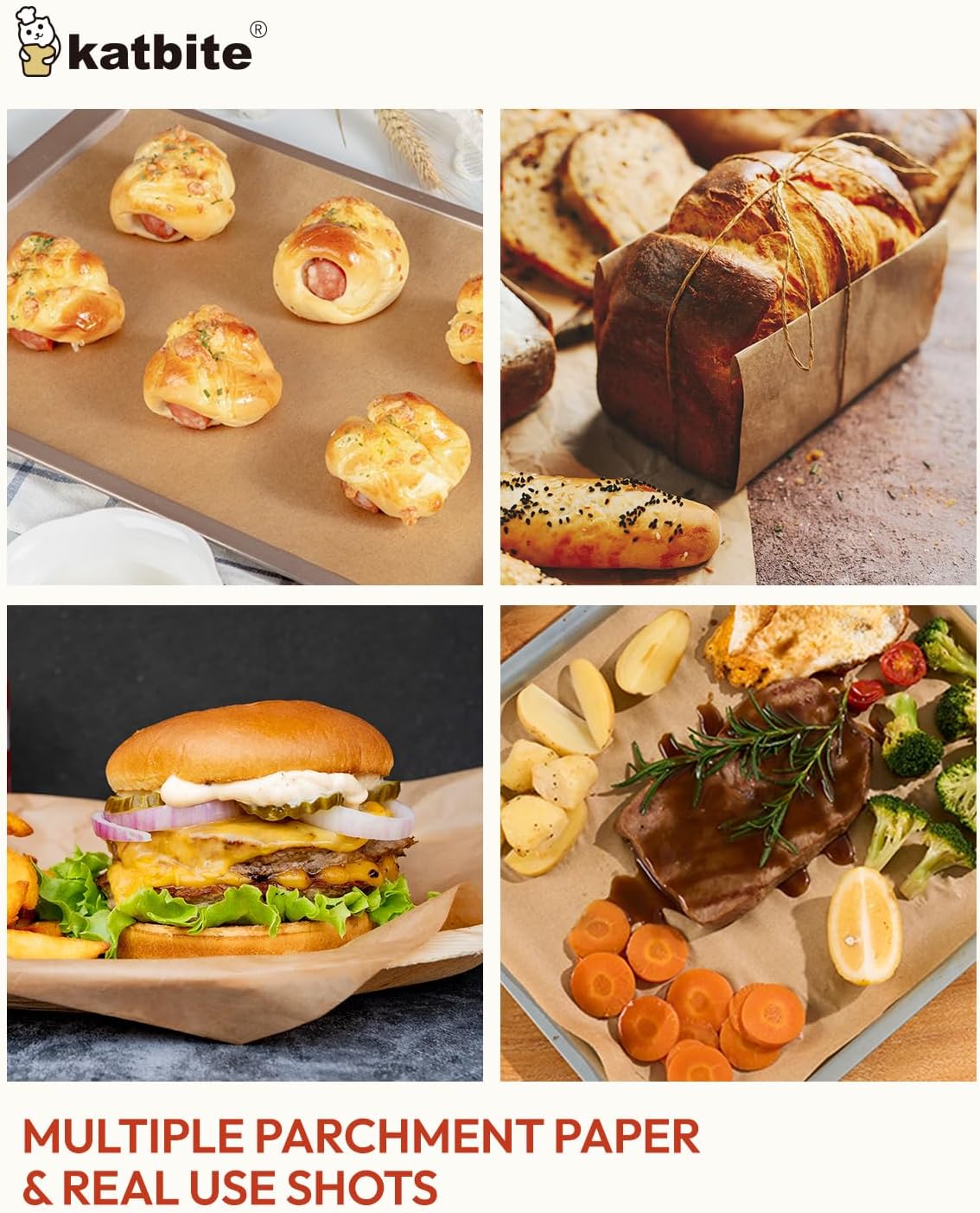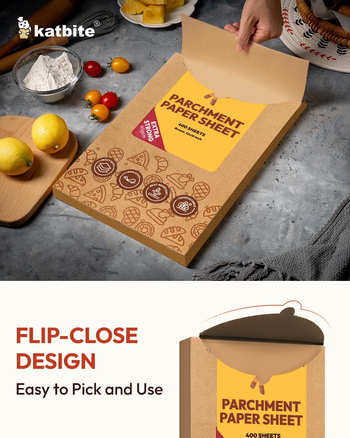 Katbite 400PCS Unbleached Parchment Paper Sheets, 12 x 16 IN Pre-Cut Baking Parchment, Heavy Duty Non-Stick Baking Paper for Half Sheet Cookie Bread Cake Pans, Grilling Meat Pizza,Oven,Air Fryer