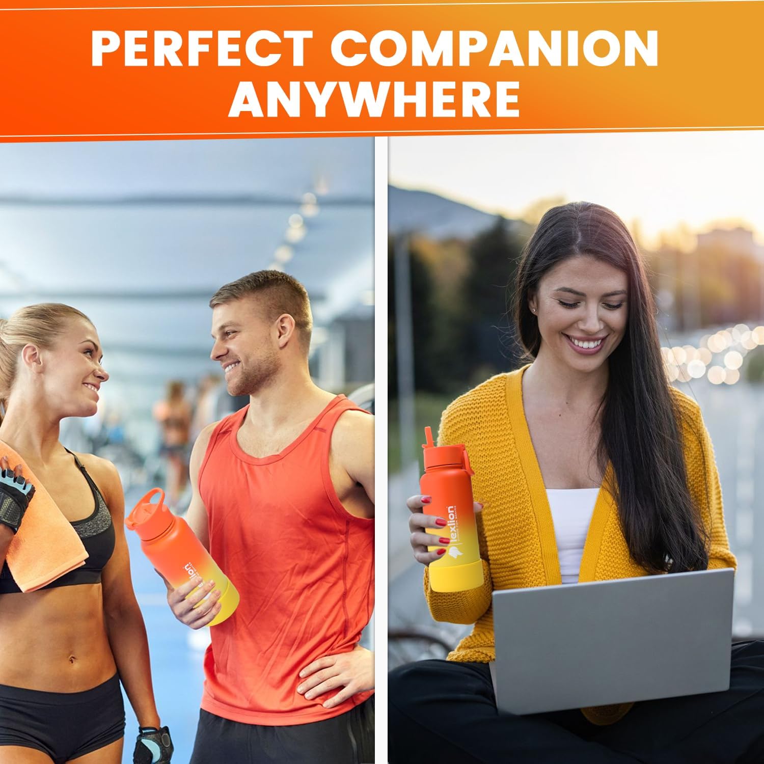 - ✅ SILICON BOOT/SLEEVE- Lexlion 32 oz stainless steel water bottle comes with an advanced shock-absorbing silicone material that helps to protect against dents, dings, scratches, and all the imperfections of your 32 oz insulated water bottle. You are protected against an inevitable drop in your water infuser bottle. This will extend the life of your flask. The infuser water bottle is BPA-free and made of soft and highest-quality material.