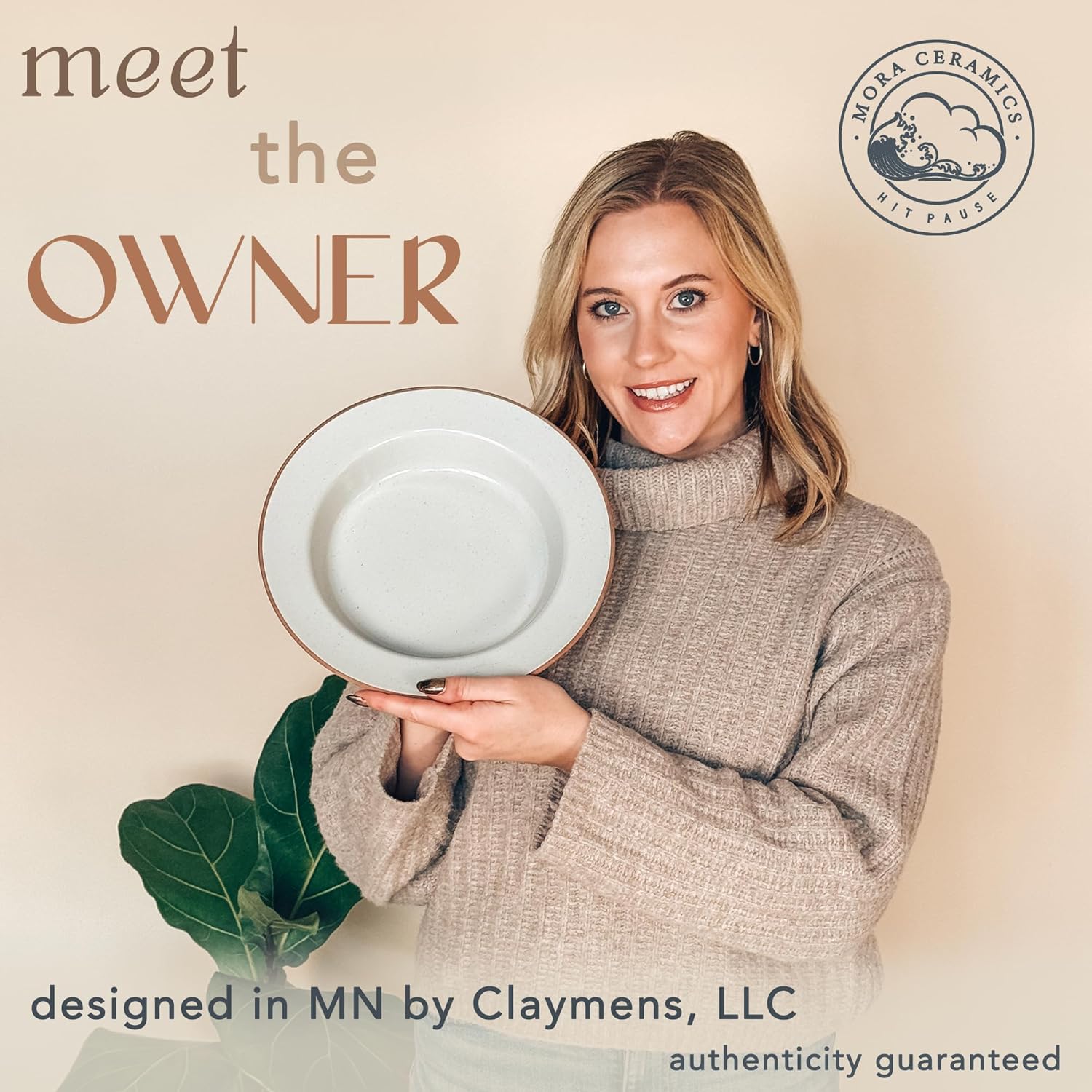 Mora Ceramic Wide Rimmed Soup Bowl 25oz, Set of 4 - For Pasta, Italian, Spaghetti, Dipping Bread, Fancy Dinner etc. Large Plate/Bowls Hybrid For Everyday & Restaurant Use, Large Flat Rim - Vanilla