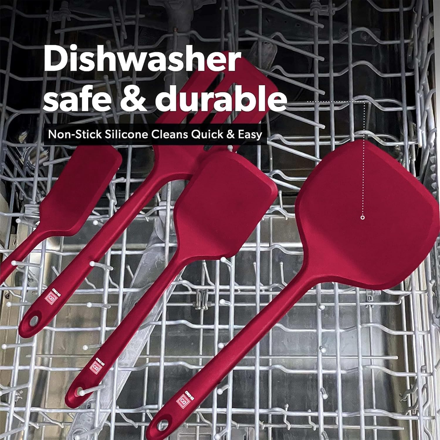 New DI ORO Seamless Series Moda 4-Piece Silicone Turner Spatula Set - 600°F Heat-Resistant Flexible Kitchen Spatulas for Nonstick Cookware - Flippers for Eggs & Pancakes - Utensils for Cooking (Red)